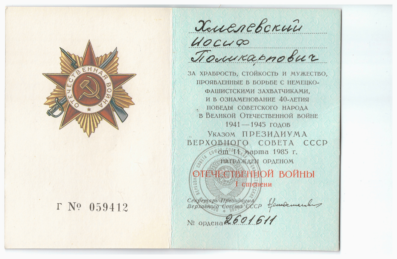 Материалы предоставила дочь, Иванова (в девичестве Хмелевская) Людмила Иосифовна, г. Отрадный Самарской области