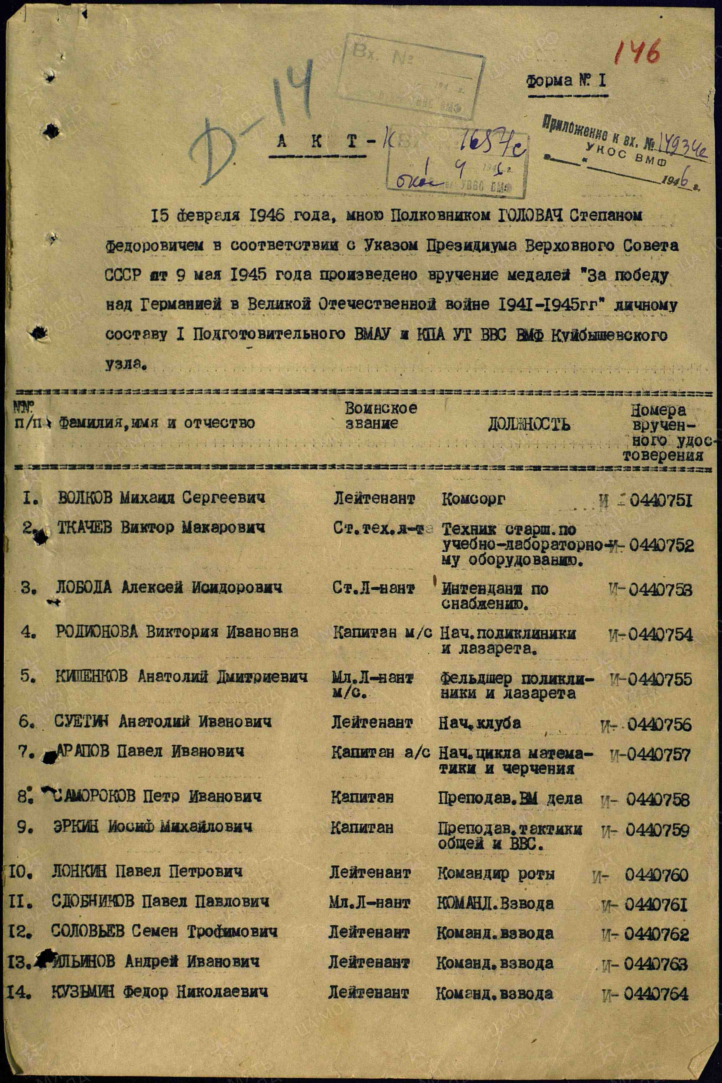 Сведения об участнике Великой Отечественной войны получены из архива Музея истории г. о. Отрадный Самарской области