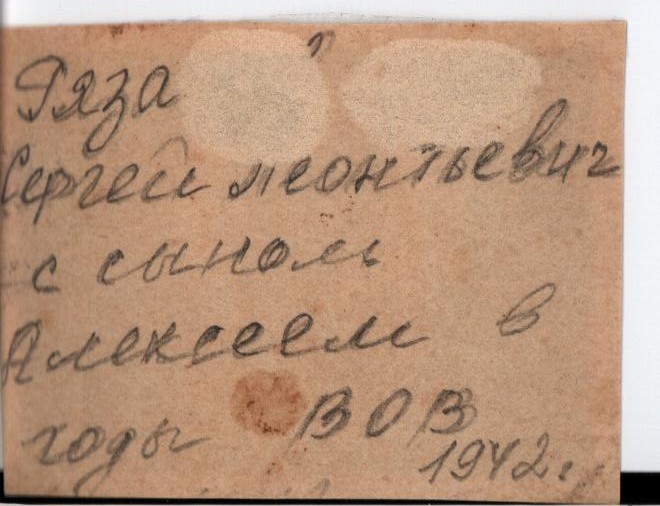 На сохранившейся фотографии военного периода Сергей Леонтьевич запечатлен с сыном Алексеем, также участником Великой Отечественной войны.