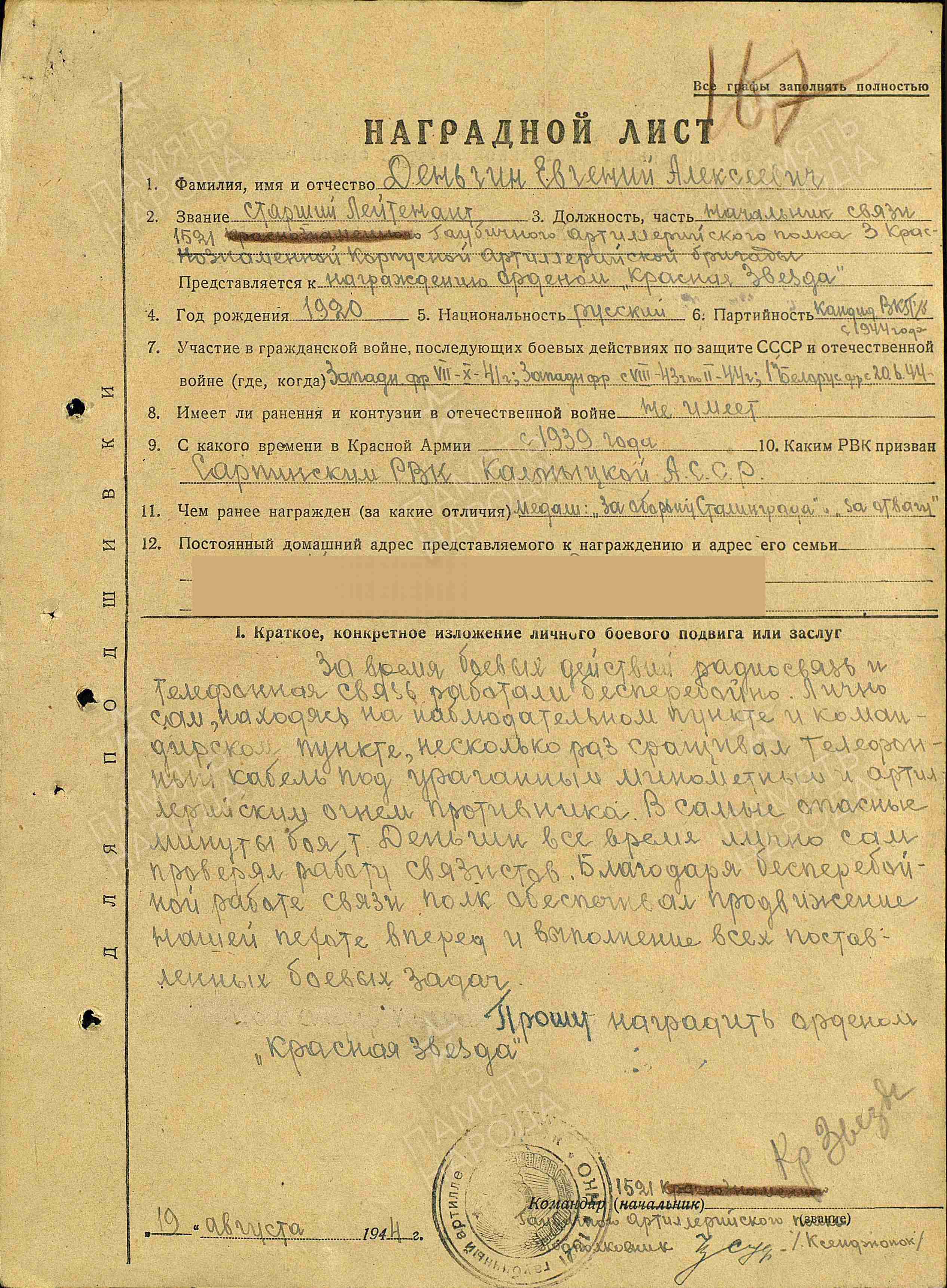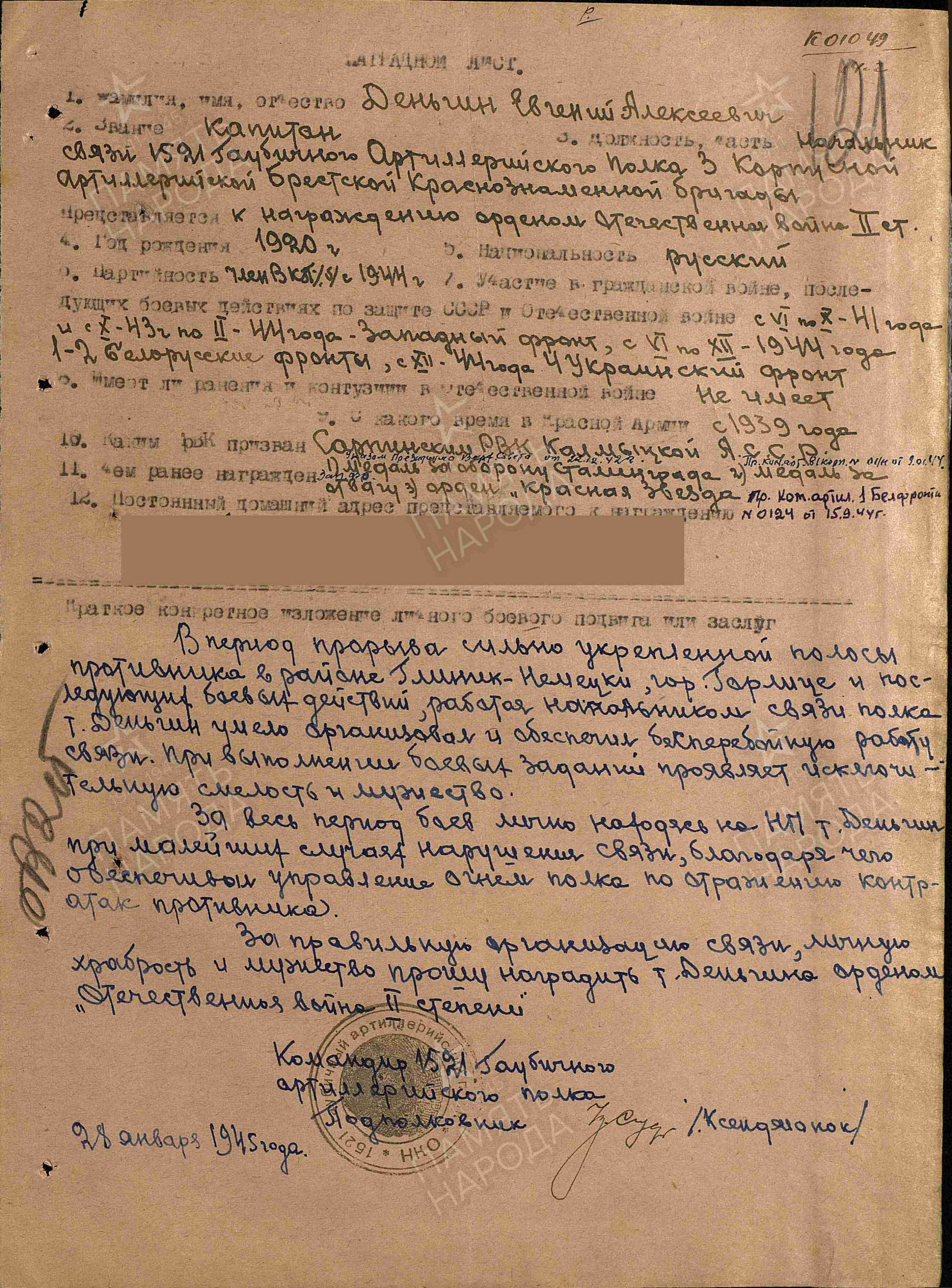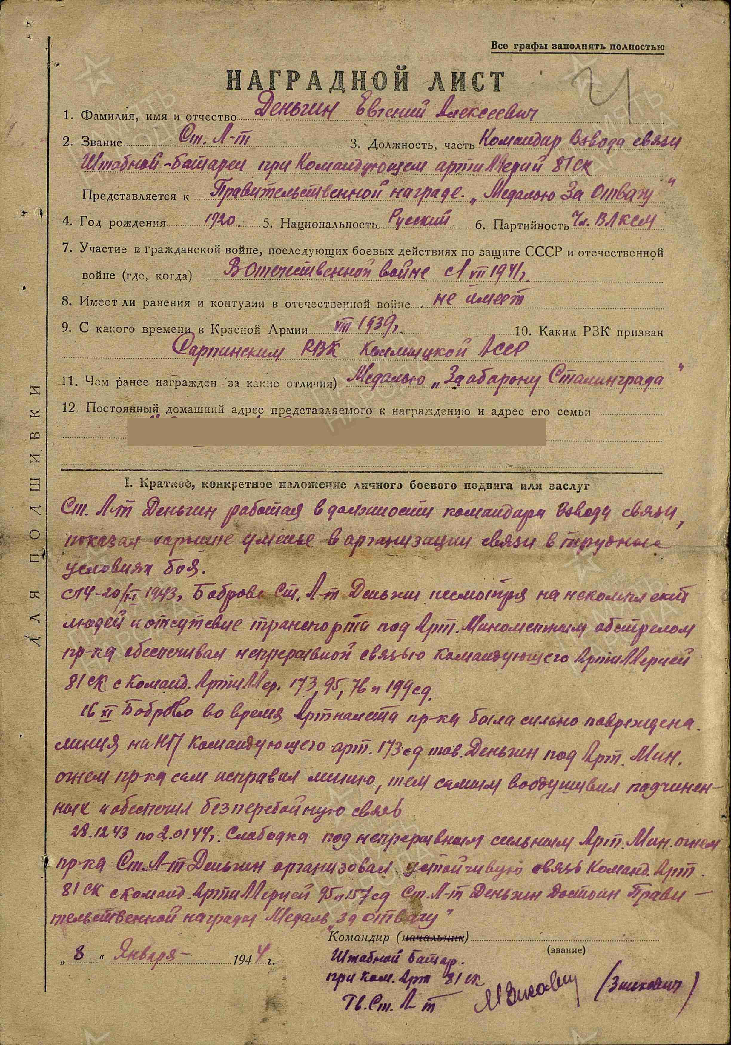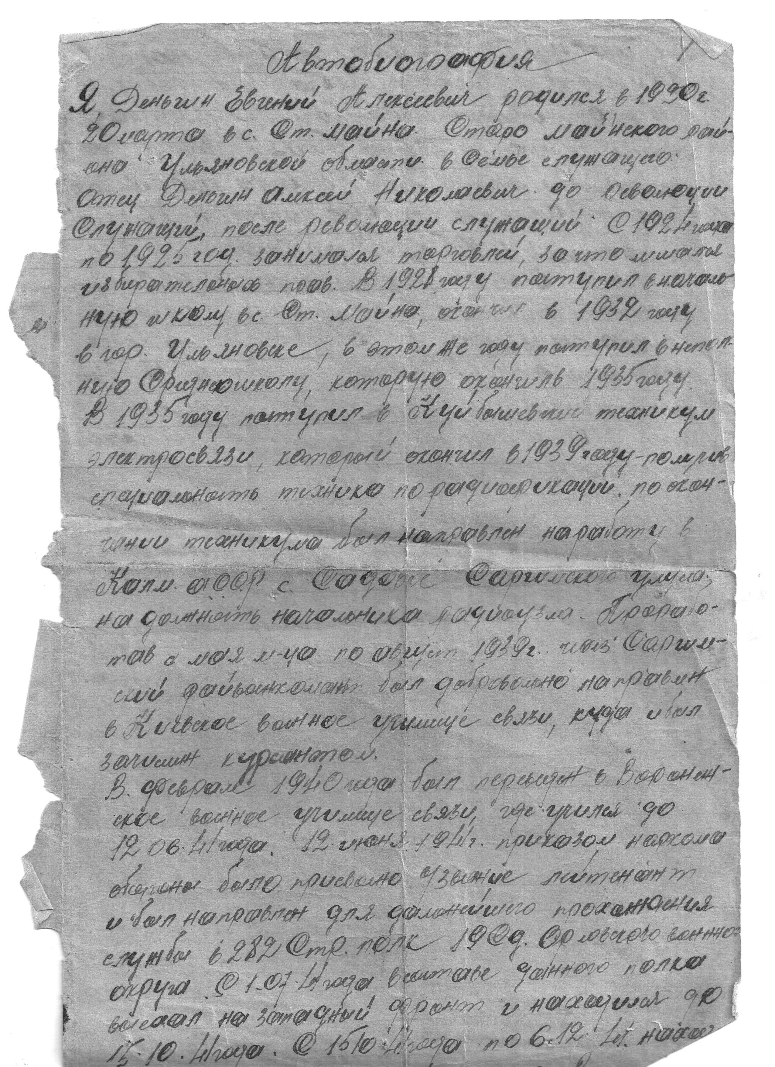 Информация составлена по материалам автобиографии, собственноручно написанной Евгением Алексеевичем Деньгиным (г. Самара)