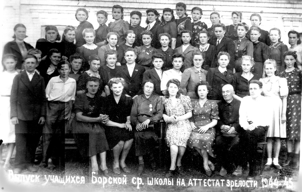 И еще одна уникальная фотография из архива музея. На ней - выпуск учащихся Борской средней школы на аттестат зрелости 1944-1945 гг.