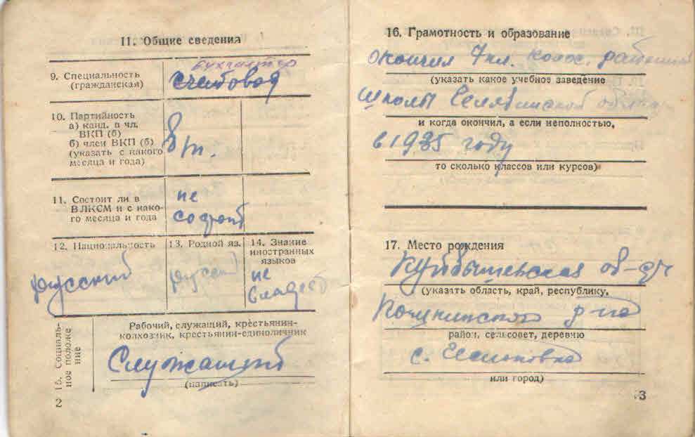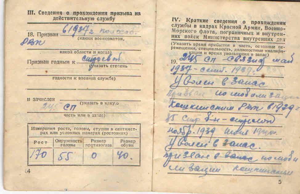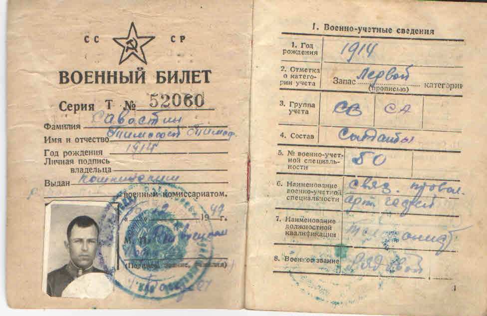 Савостин Т. Т. Военный билет, 1947 г. (4 стр.)