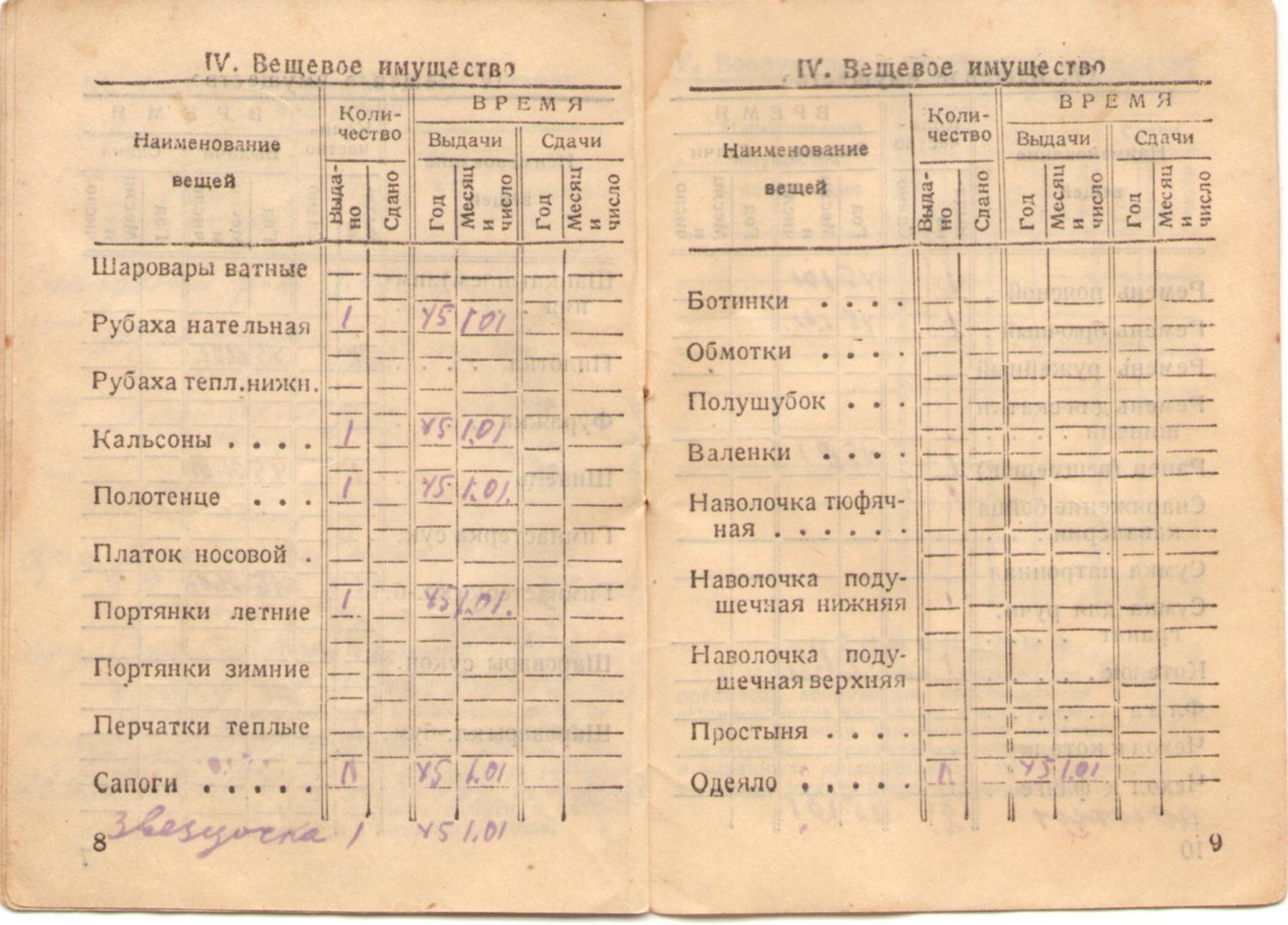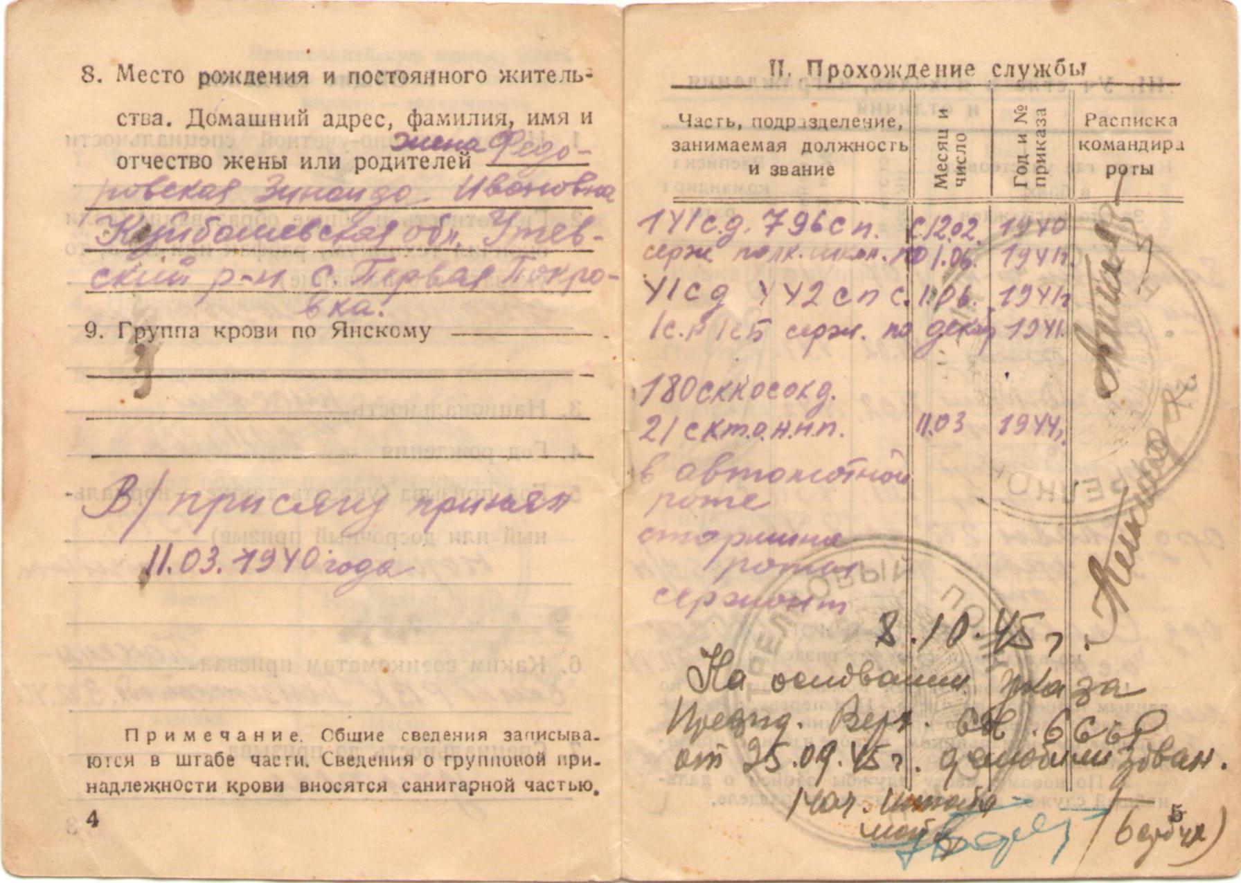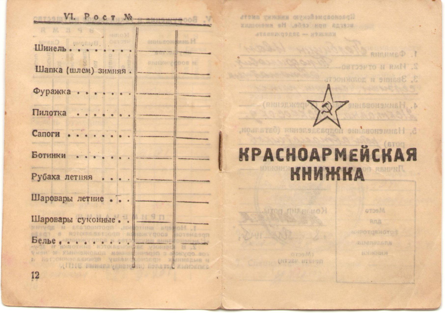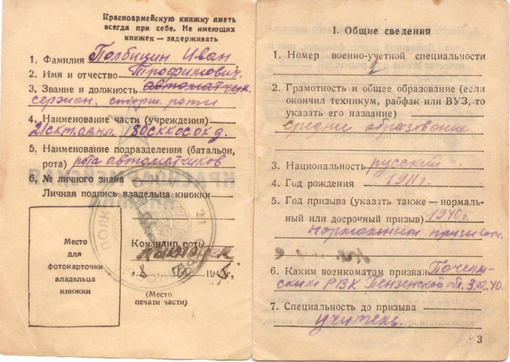 Полбицын И.Т. Красноармейская книжка (5 стр.)