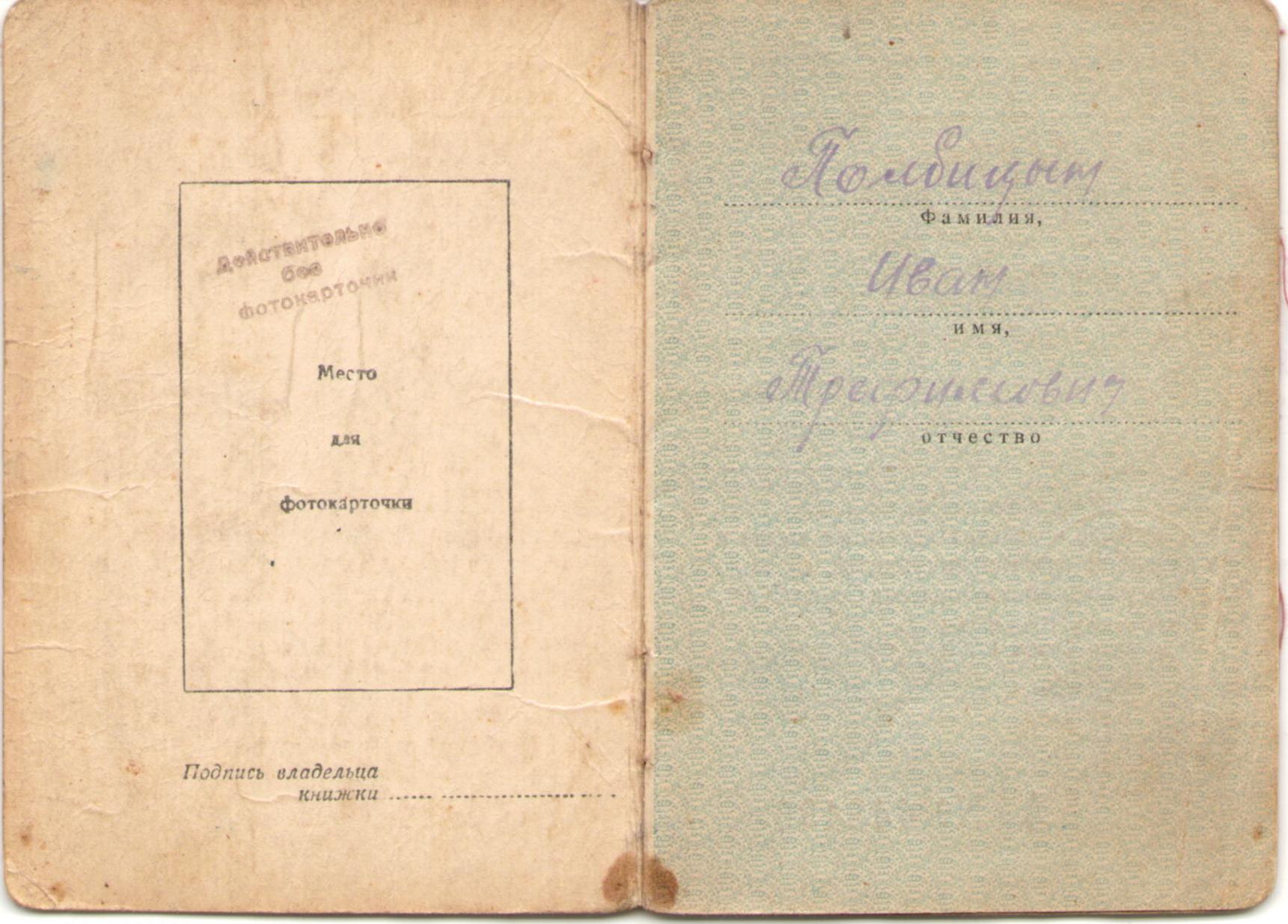 Полбицын И.Т. Орденская книжка (3 стр.)