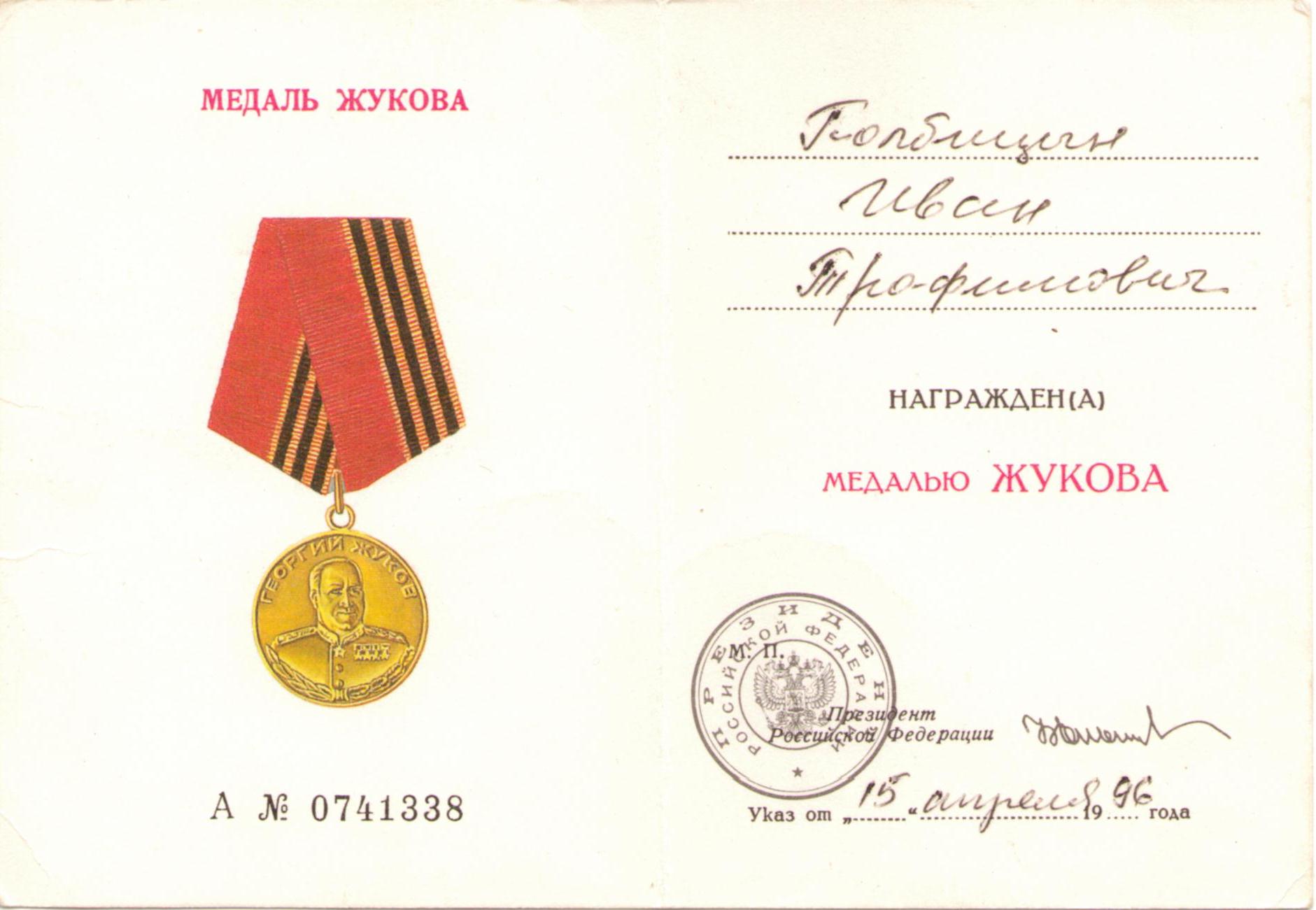Полбицын И.Т. Удостоверение к медали Жукова (2 стр.)