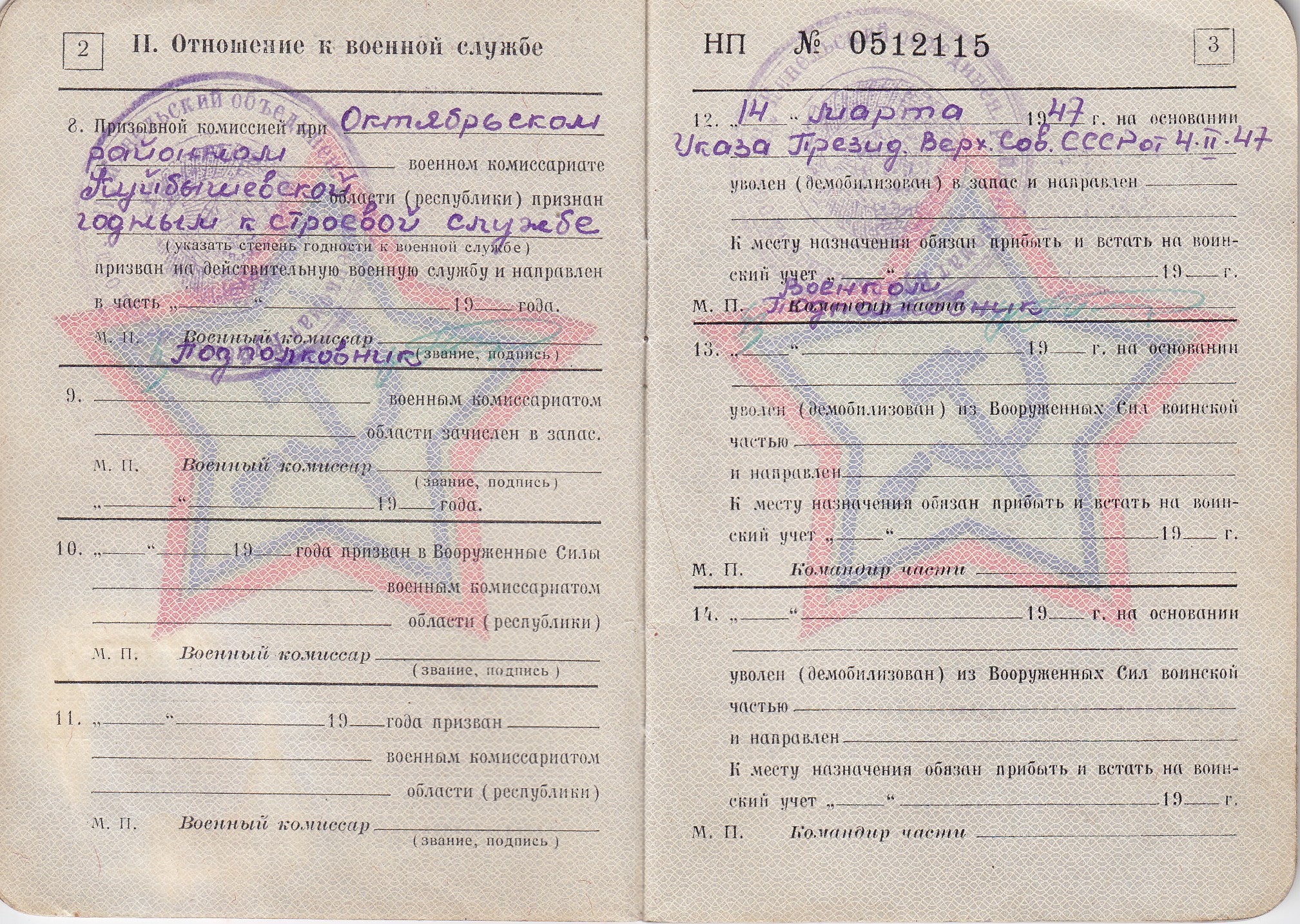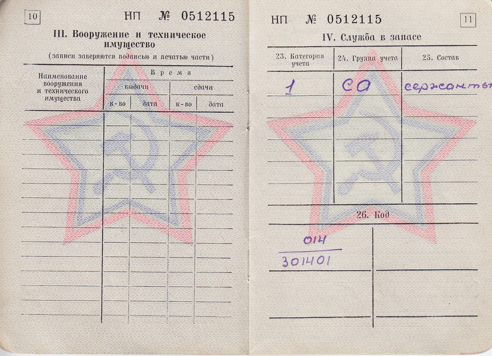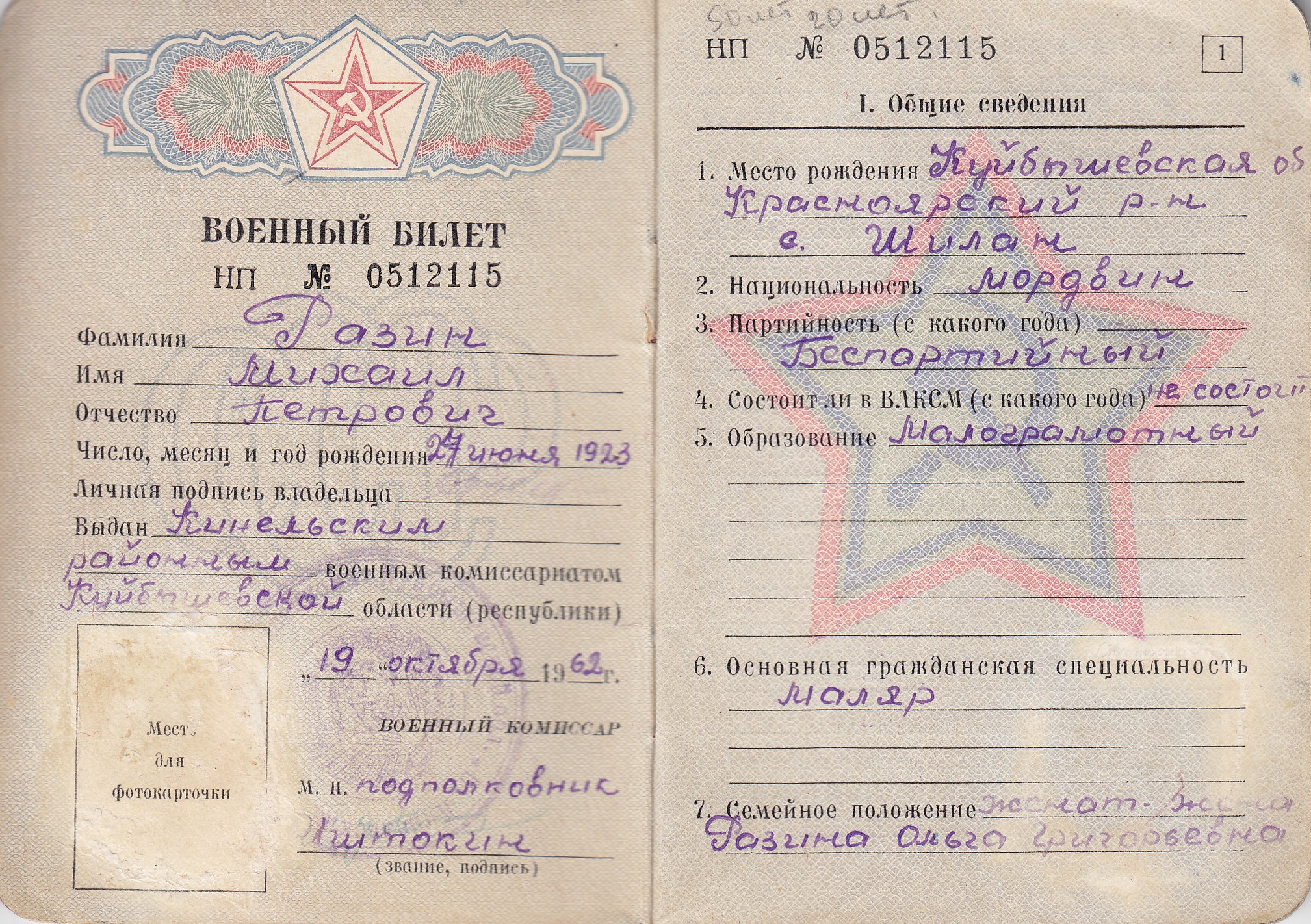 Разин М.П. Военный билет (11 стр.)