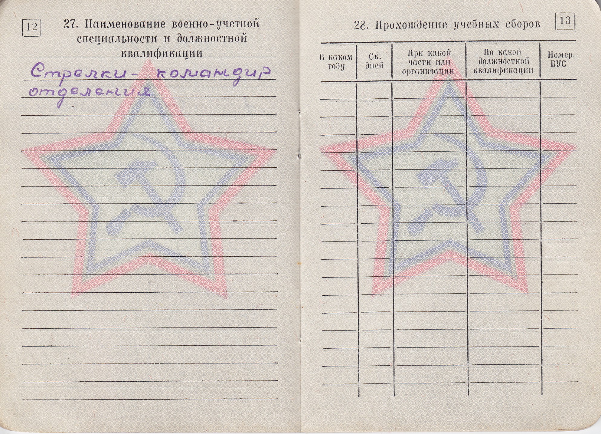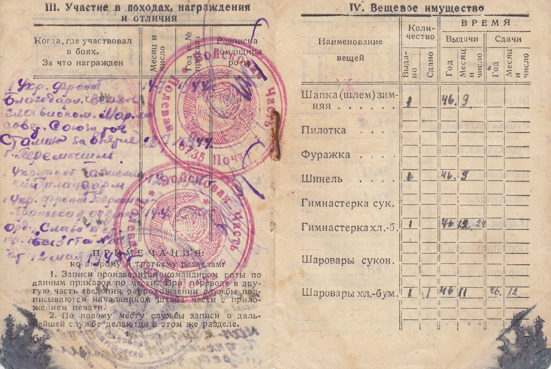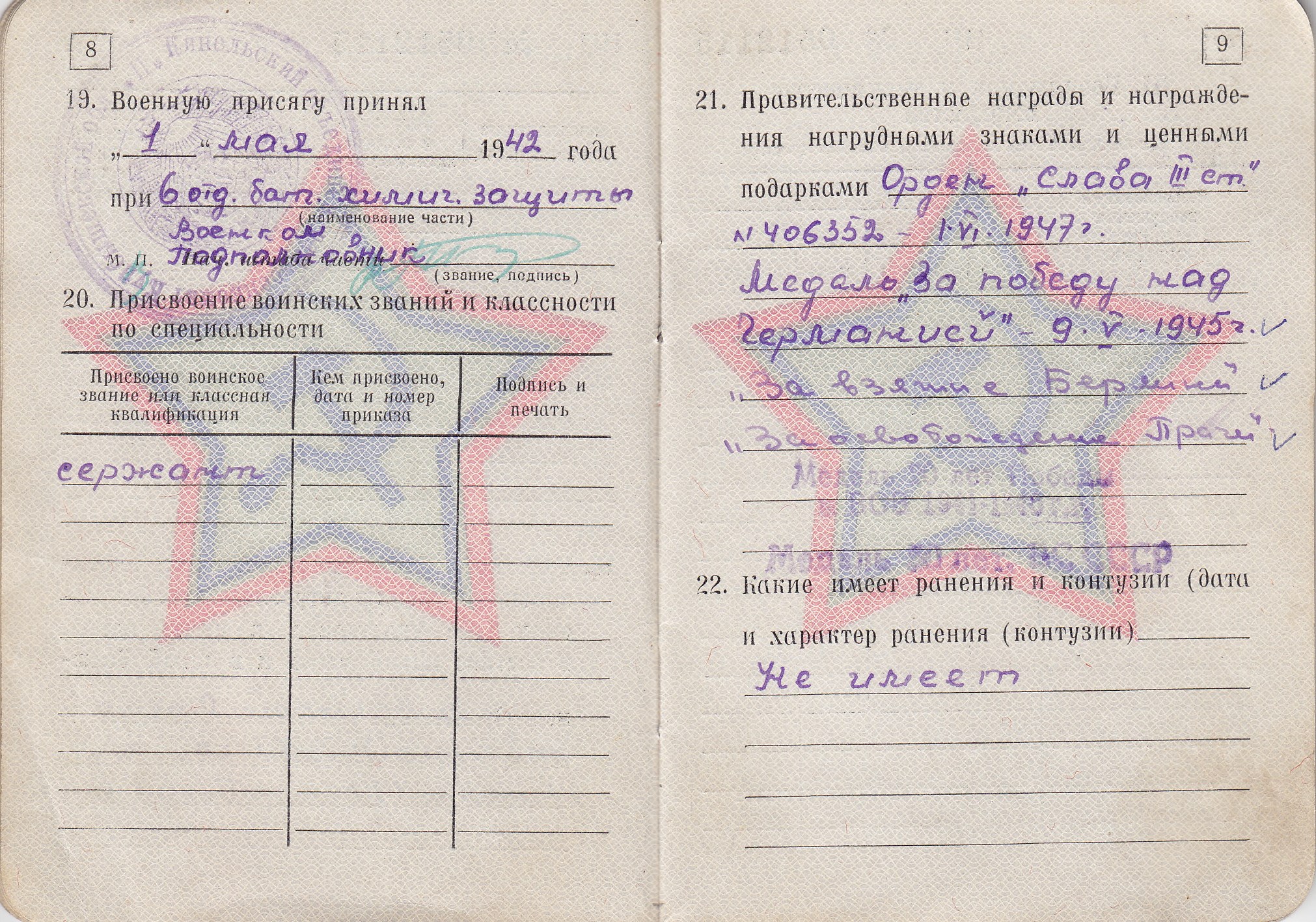 Разин М.П. Военный билет (11 стр.)