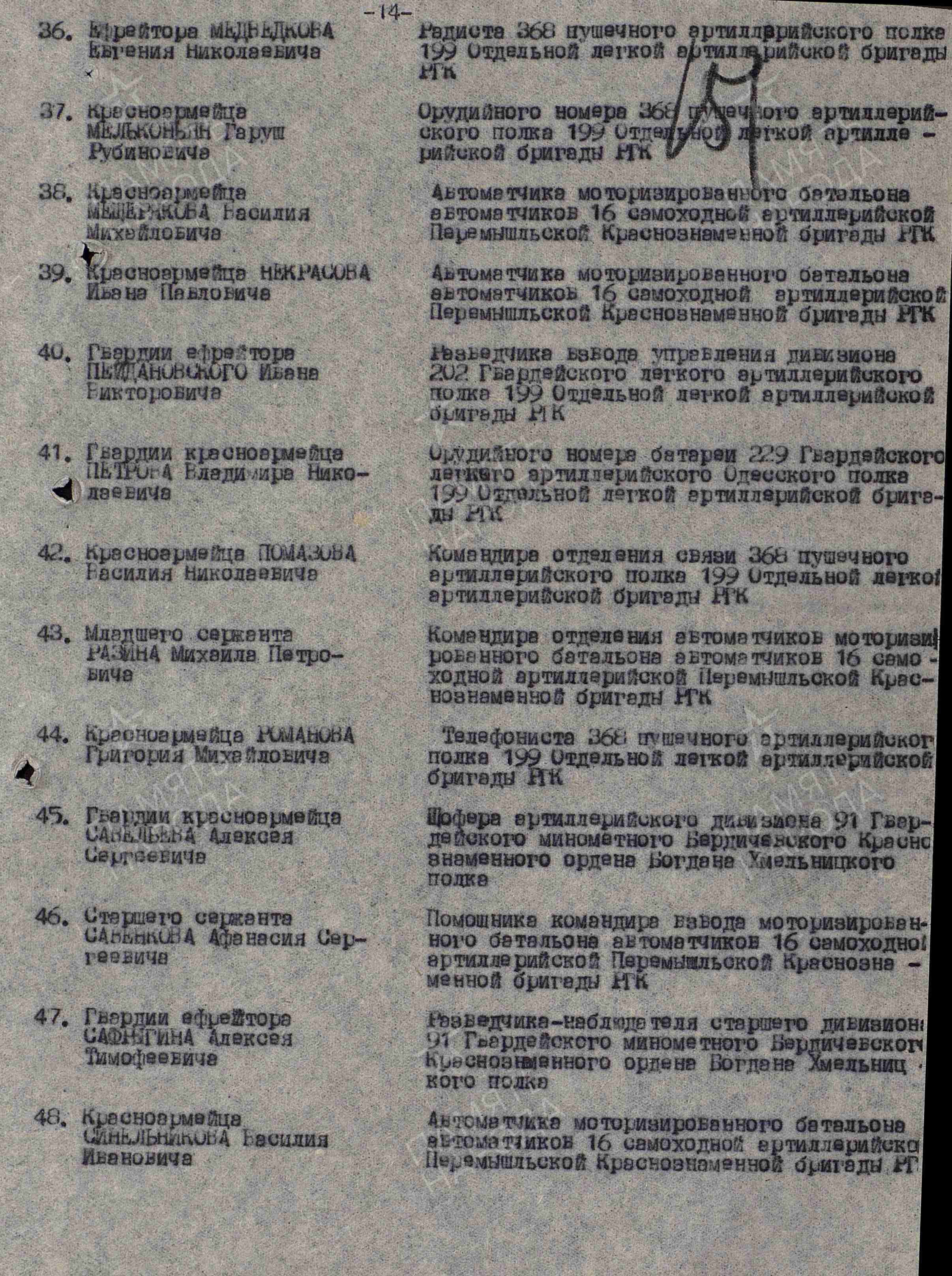 Разин М.П. Приказ от 12 мая 1945 г. о награждении орденом Слава III степени (архивная копия, 2 стр.)
