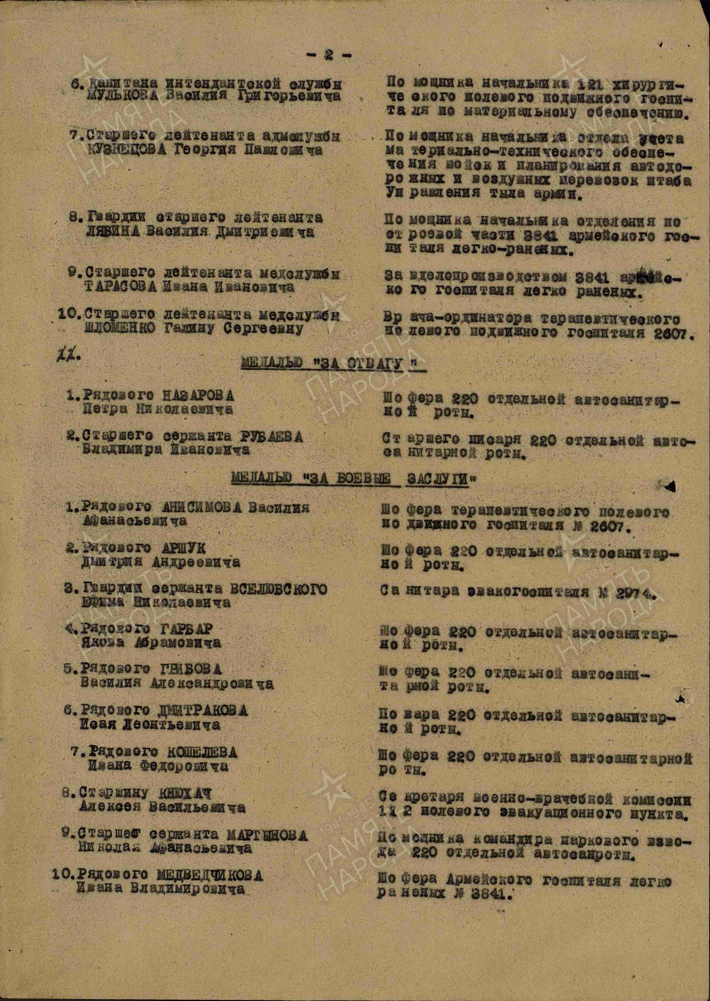 Награды: орден Красной Звезды, медаль «За боевые заслуги», медаль «За оборону Москвы», медаль «За победу над Германией в Великой Отечественной войне 1941–1945 гг.».