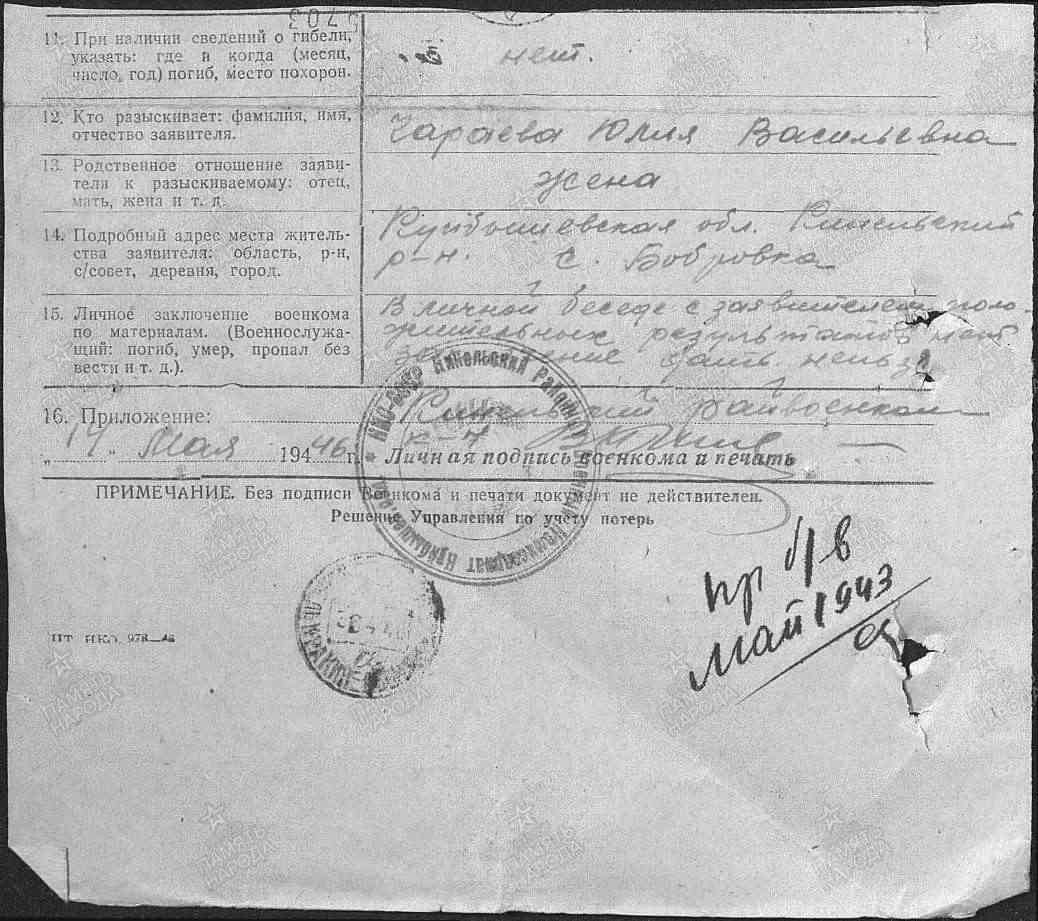 Николай Алексеевич родился в с. Бобровка, в 1913 году. Погиб в январе 1943 года (по другим архивным документам: в декабре 1941 года; в мае 1943 года). Больше информации нет.