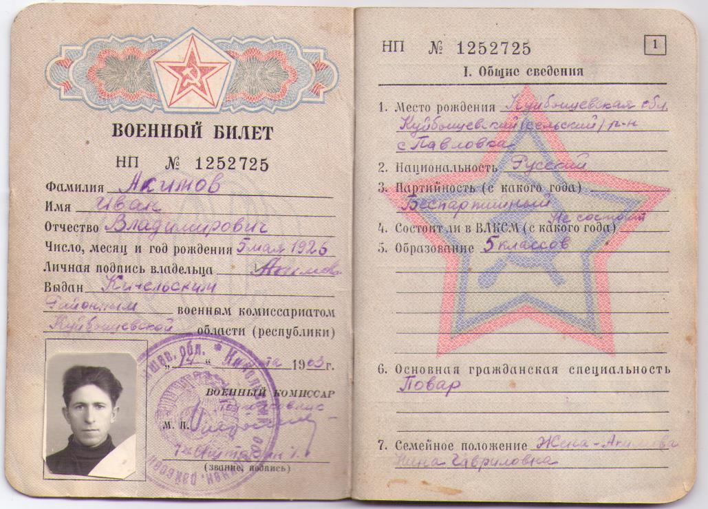 Иван Акимов Родился 5 мая 1926 года в селе Павловка Кинельского района Куйбышевской области. Окончи 5 классов. Призван на военную службу 11 ноября 1943 года. С ноября 1943 г. по июль 1944 года - стрелок 30 стрелковой бригады. С июля 1944 г. по апрель 1945 г. - курсант 390 стрелковой дивизии, учебная рота. С апреля 1944 г. по май 1945 г. находился в воинской части 608 батальона аэродромного обслуживания в должности стрелок. С 9 августа 1945 года по 9 сентября 1945 г. участвовал в войне с Японией.