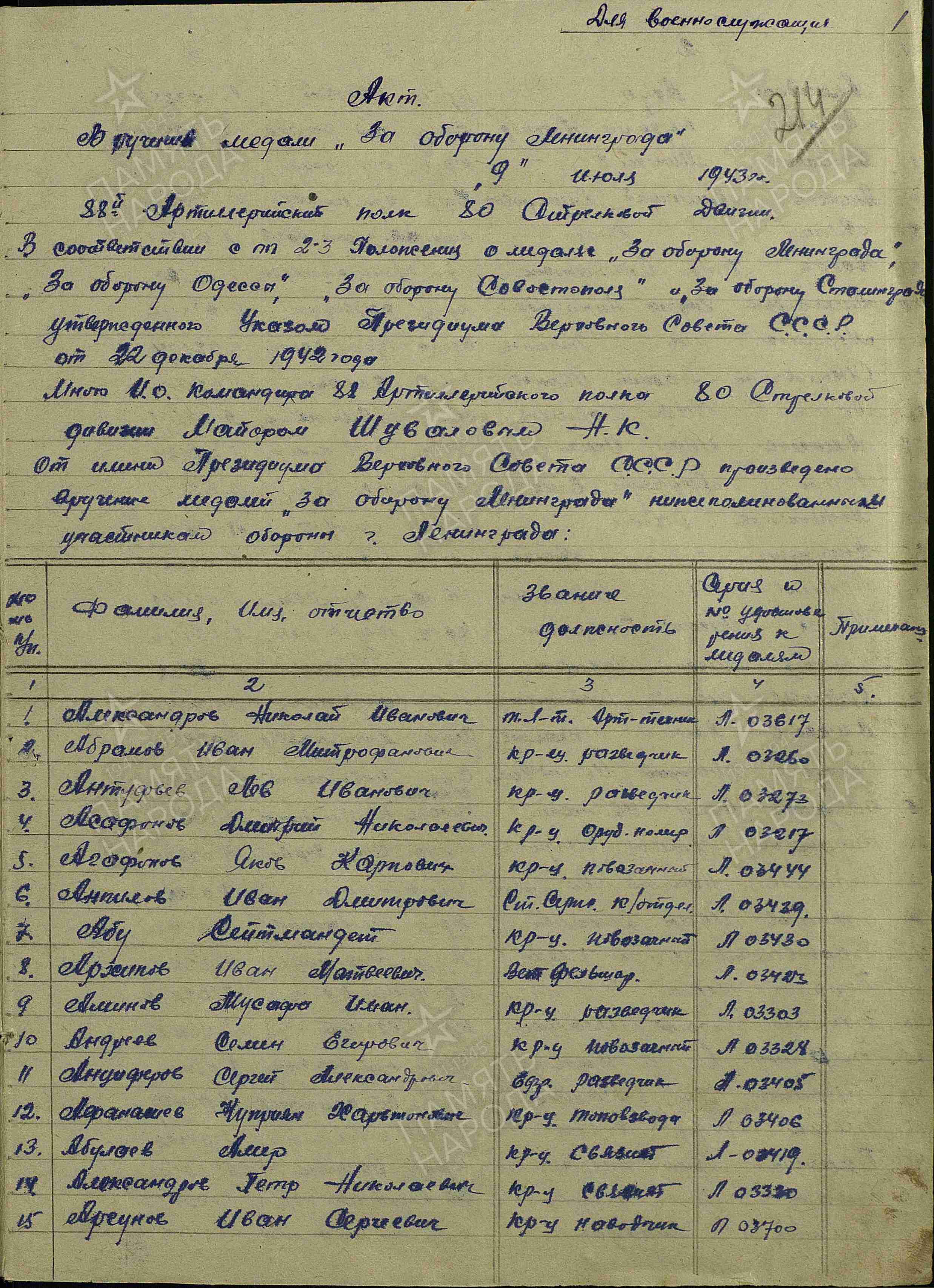Ванифатий Гуськов родился 14 декабря 1898 г. в селе Тростянка Елховского района Куйбышевской области. Ушел на фронт в 1941 году. Демобилизовался в 1944 году по ранению в чашечку коленного сустава. Награждён медалью «За оборону Ленинграда».