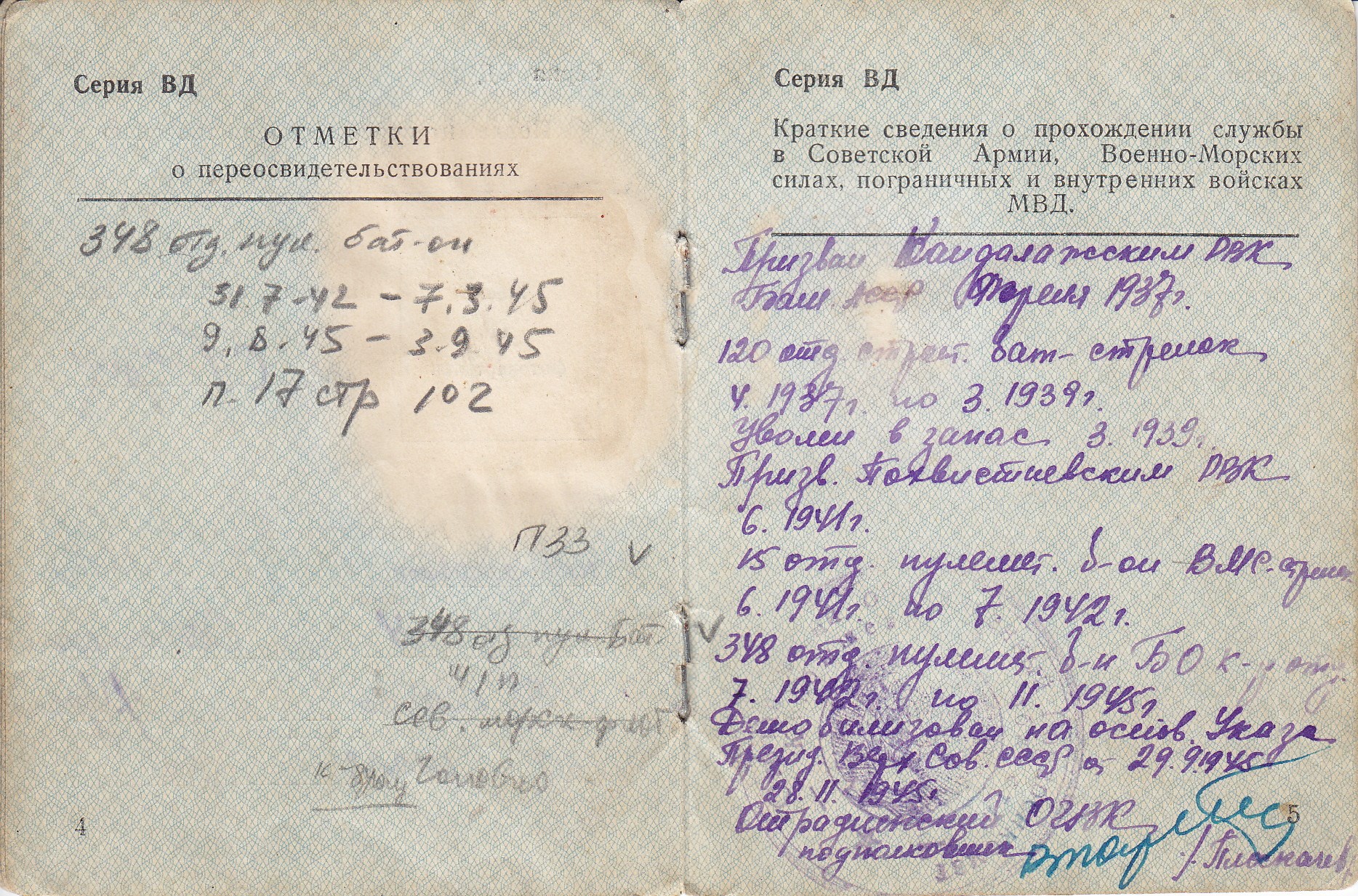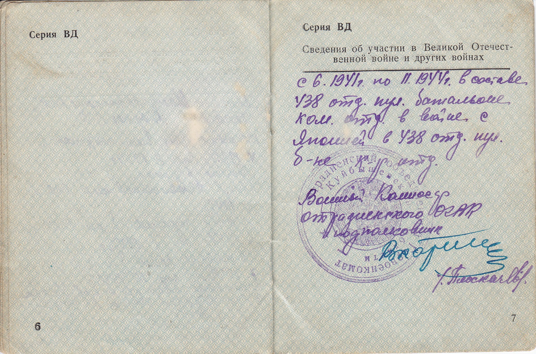 Гаврилов С.П. Свидетельство об освобождении от воинской обязанности (6 стр.)