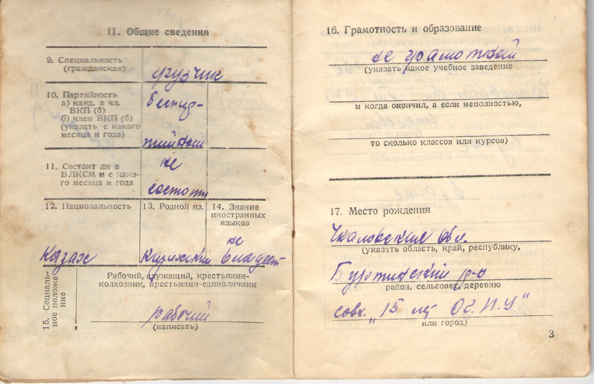 Родился в 1902 году в Чкаловской (Оренбургской) области, Буртинский район, совхоз «15 лет ОГПУ». Труженик тыла. В годы войны работал на заводе, выполнял военные заказы (делал снаряды). Информации больше нет.