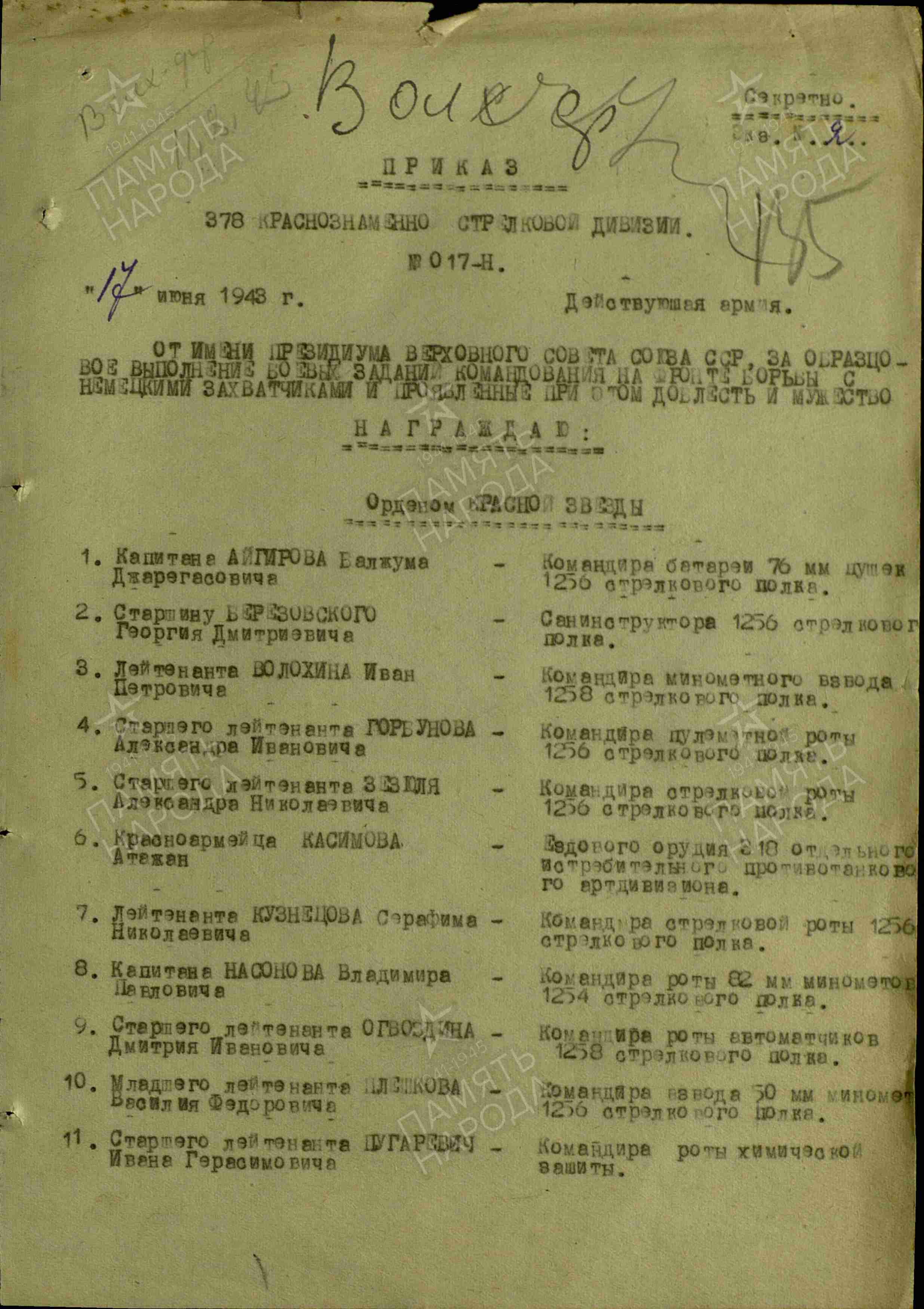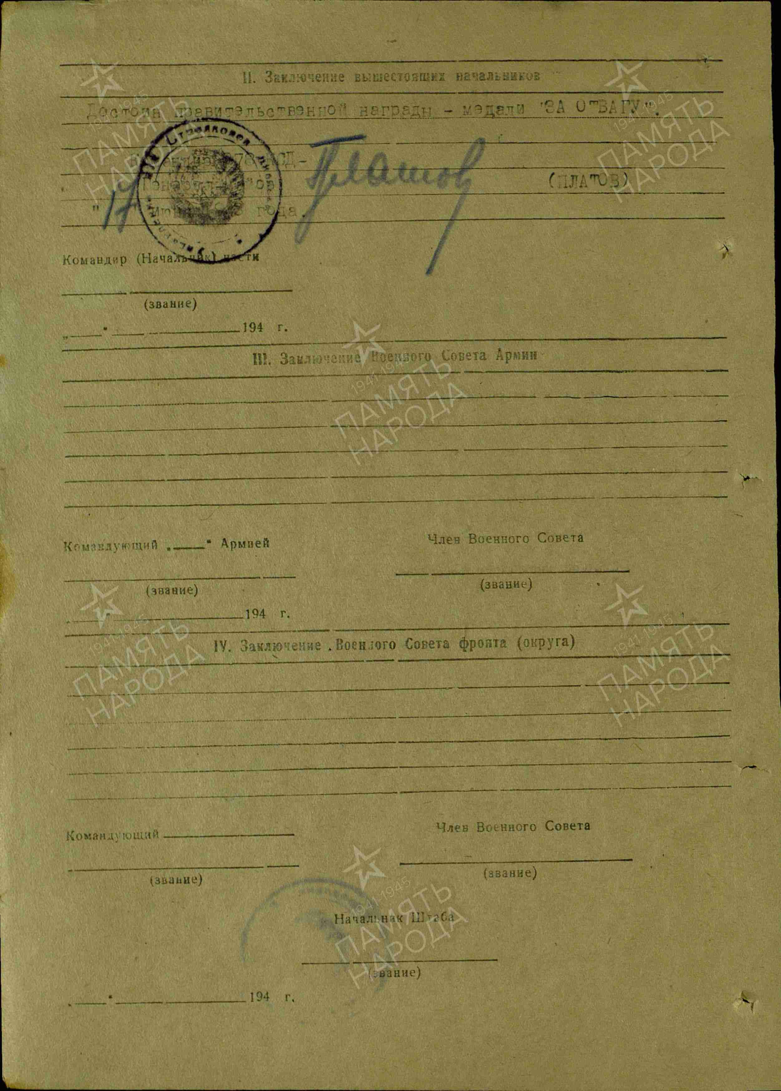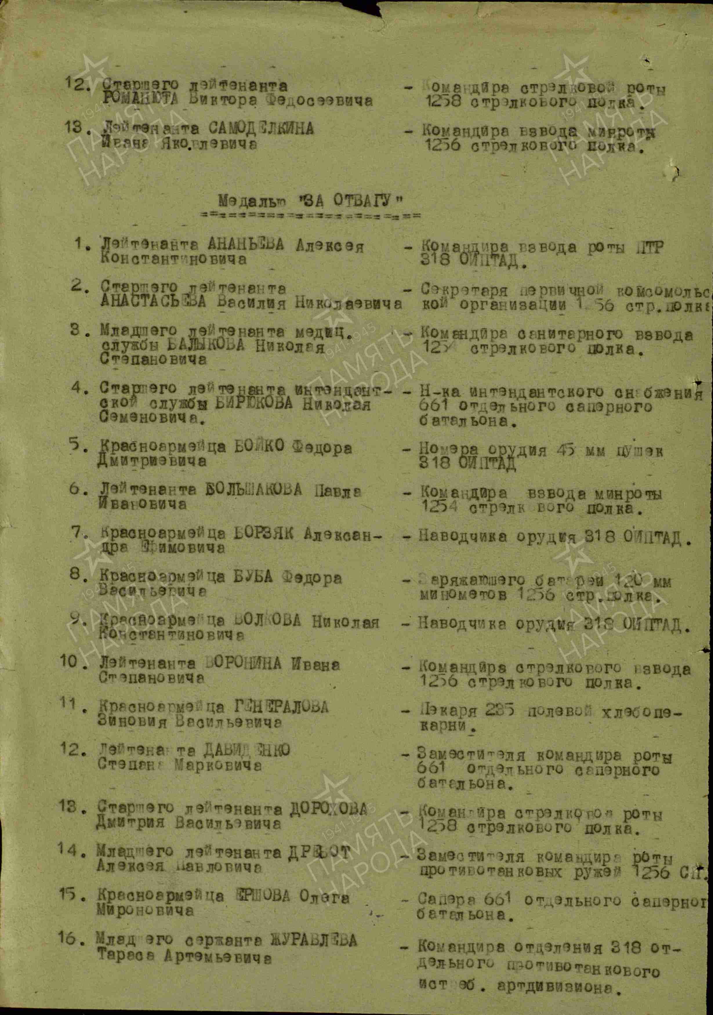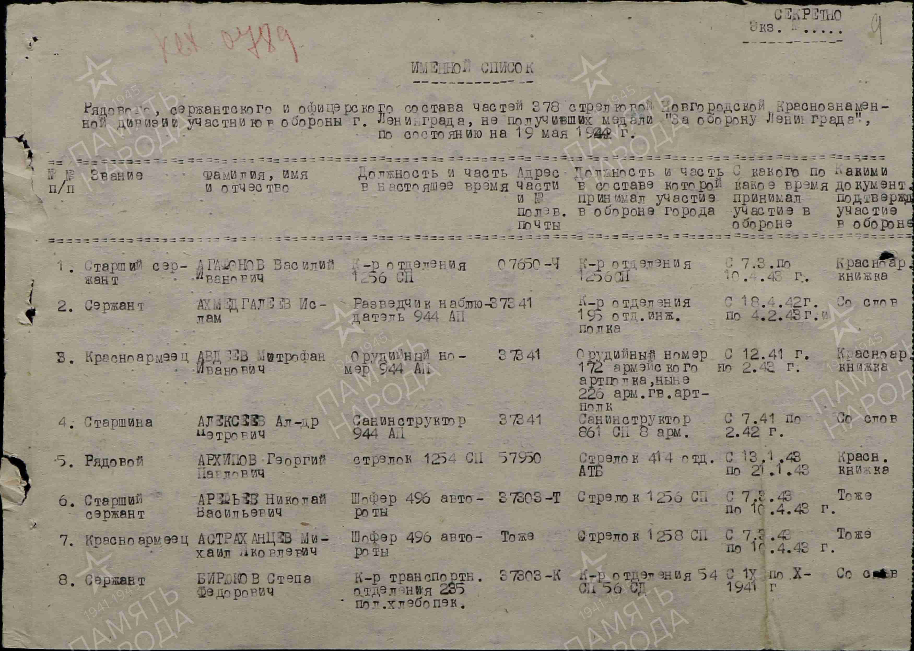 Награды: медаль «За отвагу», медаль «За победу над Германией в Великой Отечественной войне 1941-1945 гг.», медаль «За оборону Ленинграда».