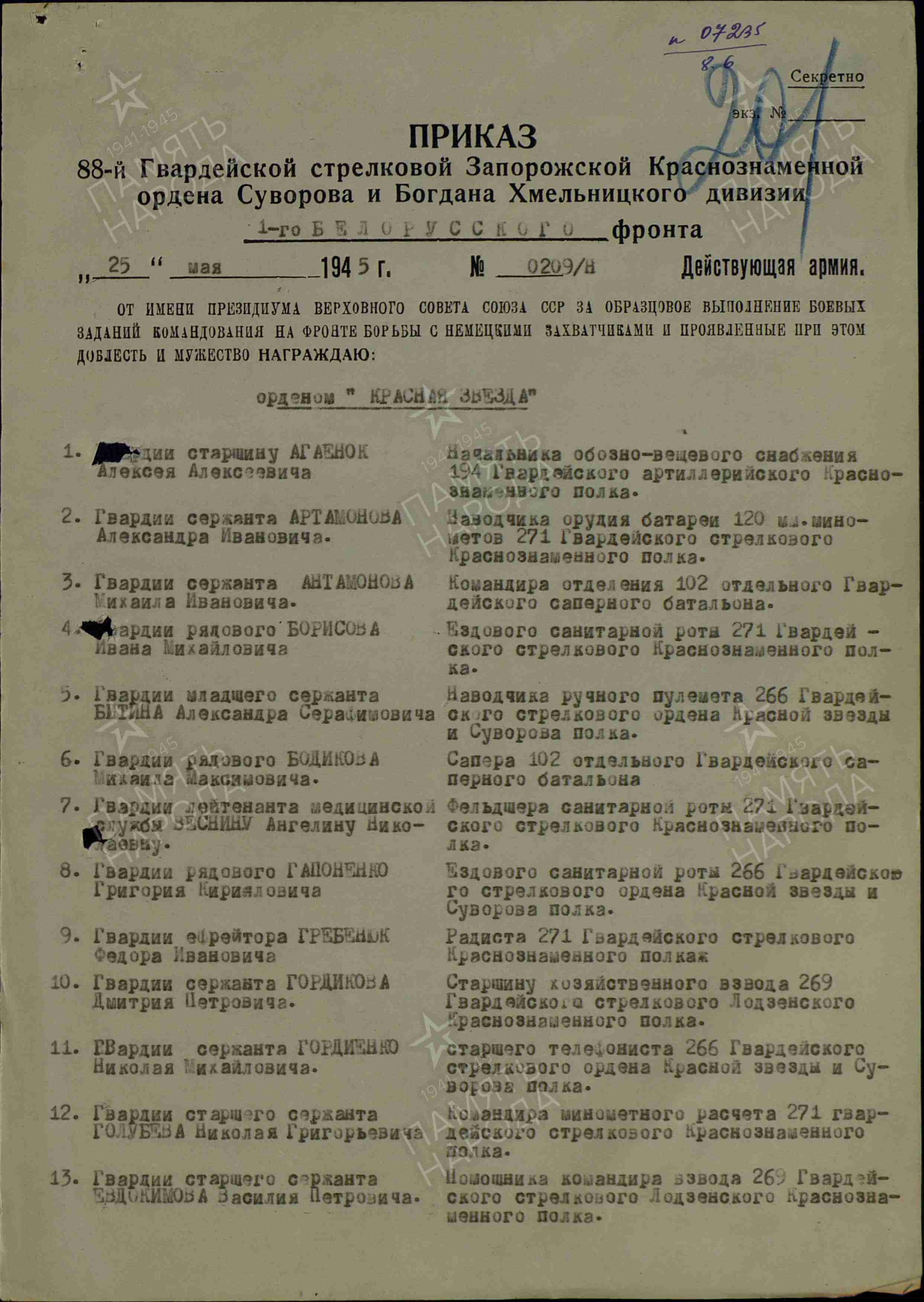 Информацию предоставила сноха, Сапрыкина Нина Александровна, с. Малая Малышевка Кинельского района Самарской области