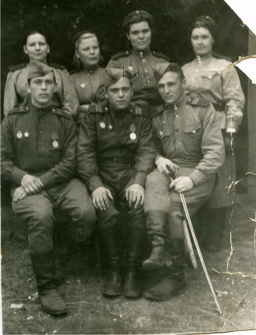 Боевое крещение. Первый выпуск радисток увозили на фронт в начале октября 1944 года (это были девчата из М. Малышевки, из с. Красносамарское, и я с Марусей из Формального). Перед отправкой на фронт мы с подругой провели вместе всю ночь, пели песни, вспоминали довоенную жизнь, плакали и клялись, что будем вести себя честно, чтобы вернуться домой с высоко поднятой головой, не запятнав свое достоинство. 15 октября нас привезли в штаб дивизии, и не успели мы сойти с машины, как начался артобстрел. А это значит, что несколько десятков орудий одновременно били по немцам, а они, в свою очередь, бомбили нас с самолетов. Из-за пыли и дыма, казалось, наступила тьма. Через некоторое время наши солдаты прорвали оборону немцев на границе Восточной Пруссии и начали продвигаться вперед. Появились убитые, раненые, а также и пленные немцы. Это все я увидела впервые, было очень страшно. Поздно вечером меня привели в дивизион 209 полка, а он в это время располагался в подвале дома, познакомили с начальником связи и радистом, а уже поутру мы отправились с группой разведчиков на боевое задание. На плечах — радиостанция весом 12 кг, карабин, вещмешок. Под обстрелом мы двигались по болоту и залегли в небольшую канаву, наполненную водой, оттуда и стали передавать по радиостанции координаты огневых точек противника, по которым била наша артиллерия. Кругом лежали убитые и раненые солдаты, то там, то здесь раздавались крики, мольба о помощи, слезы. На меня это очень сильно подействовало, я стала словно неживая, не могла ни спать, ни есть, ни пить. Вот так я приняла свое боевое крещение.