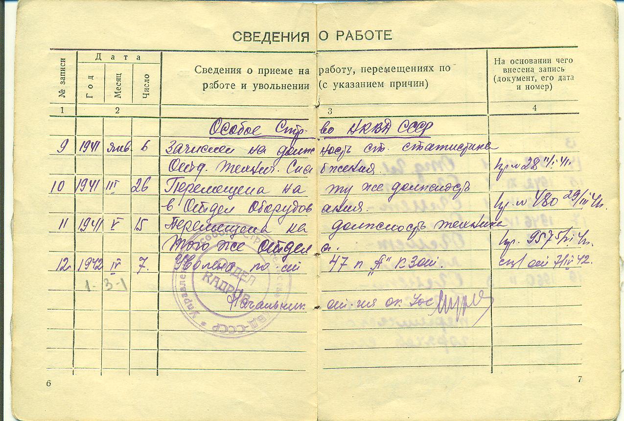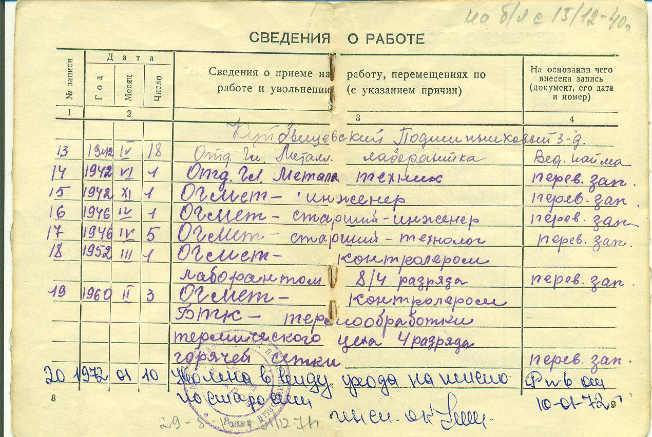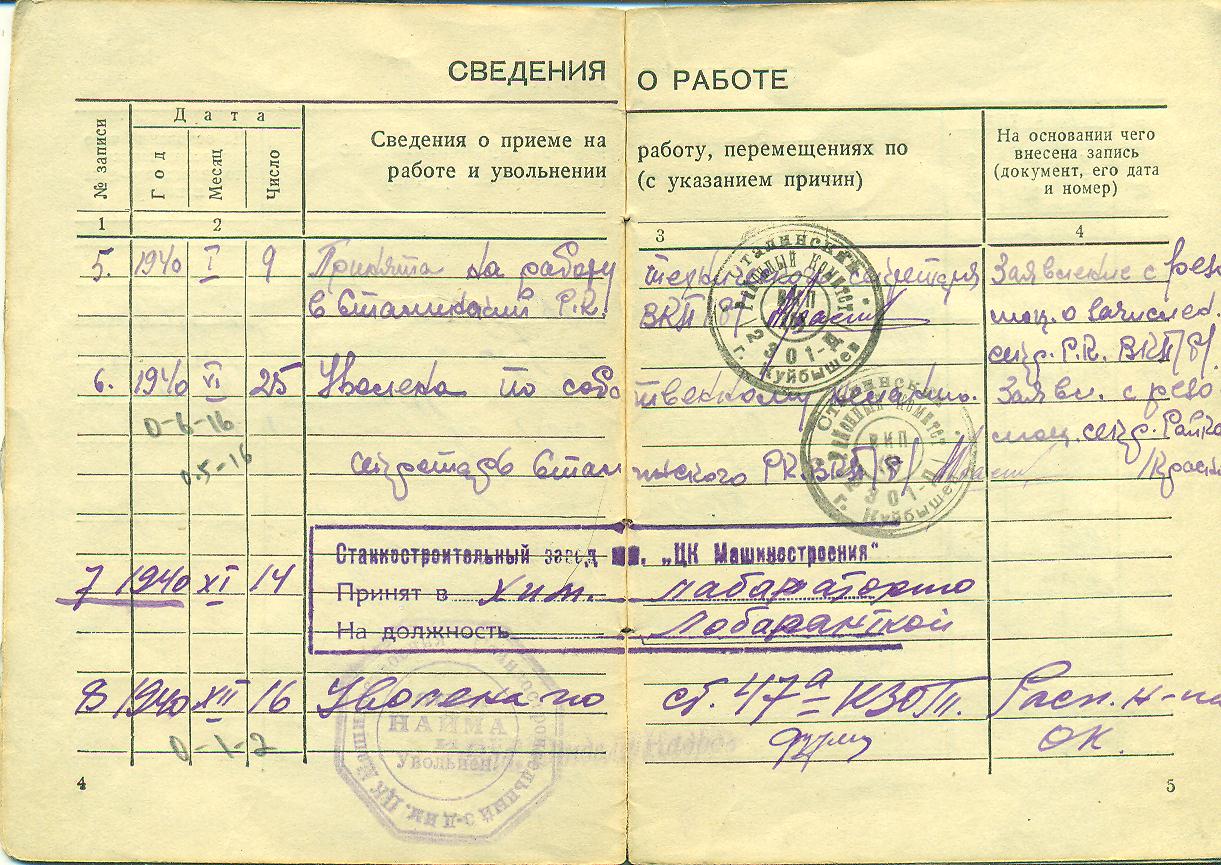 Из трудовой Характеристики: «т. Игаева А.Г. работает на заводе с 7 апреля 1942 г. Очень быстро освоила новое для нее производство и уже на 3-й месяц своей работы на заводе выдвинута в начальники смены по исследованию готовых подшипников и разных деталей после термообработки. Все время является одной из лучших стахановок цеха. Наряду с производственной, т. Игаева ведет большую общественную работу – является секретарем комсомольской организации цеха. Муж т. Игаевой, оправившись после тяжелого ранения, снова выехал на фронт. Подписи: Главный металлург завода Ефремов. Парторг Пахтер. Пред. цехкома Некрасов. 03.06.1943 г.».