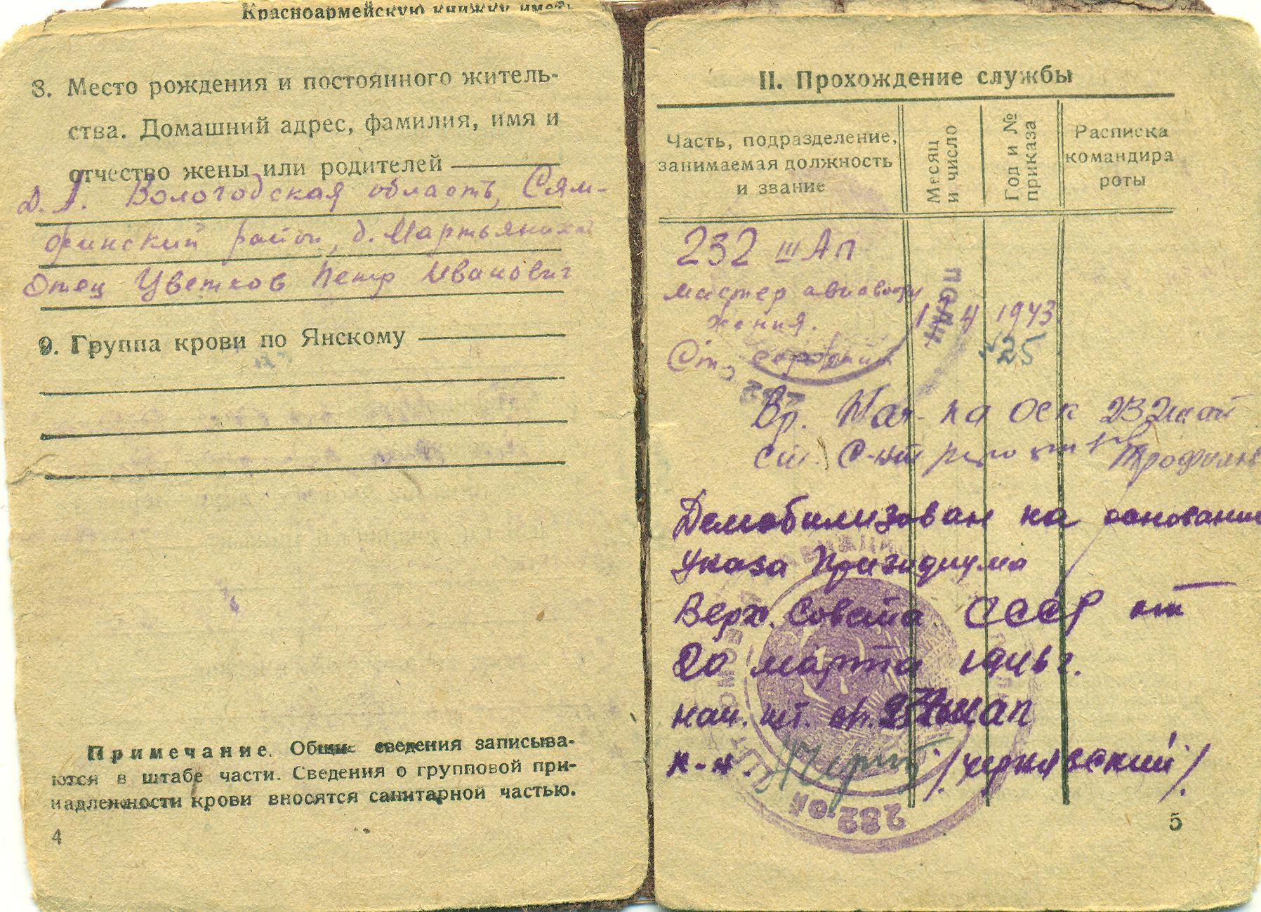 Родился 21 января 1918 г. в деревне Мартьяниха Коробицынского сельсовета Сям-женского района Вологодской области. Участник Великой Отечественной войны с первого дня до последнего. Начало войны застало его в Приднестровье, где он проходил действительную службу, на которую был призван в 1939 году из Ярославля. В октябре 1941 года был легко ранен (Южный фронт), находился на излечении в госпитале. Второй раз был ранен, предположительно, под Сталинградом, лежал в госпитале в Саратове. У него был перебит нерв, рука не действовала. Хирург (по воспоминаниям то ли грузин, то ли армянин) спас папе руку от ампутации.