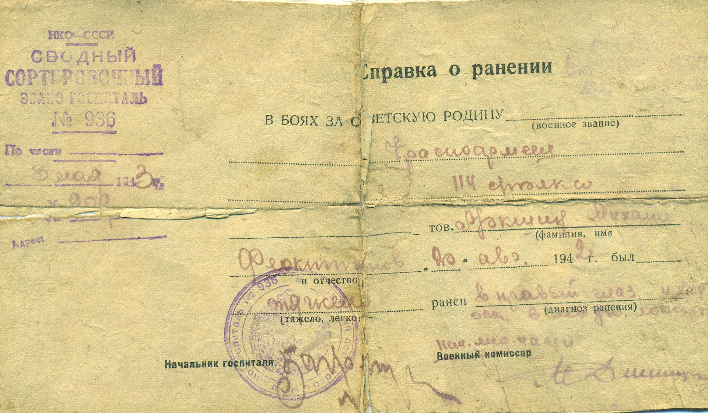 Родился 27 ноября 1922 года в с. Старое Вечканово Куйбышевской области. Во время войны состоял в стрелковой дивизии. Участвовал в Сталинградской битве. Был ранен в глаз. Два дня лежал без сознания в поле. Хотели хоронить, но он очнулся и зашевелился. Провел полгода в иркутском госпитале. С 1943 года служил на Дальнем Востоке. Демобилизован в 1946 году. Умер 14.02.1994 г. Награжден орденом Отечественной войны I степени (1985 г.).
