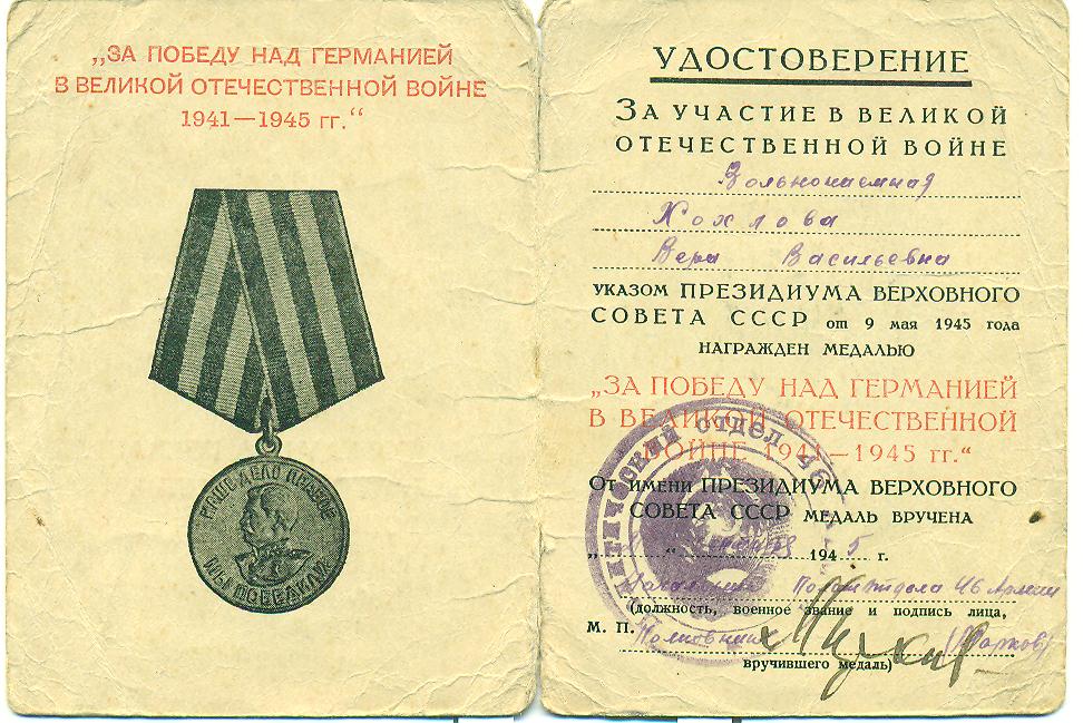 Родилась в 1919 году. Была вольнонаемной. Прошла дорогами войны с военной кинохроникой и закончила войну в Австрии. Затем она вернулась домой в Куйбышев. Вера Васильевна Хохлова умерла в 1990 году.