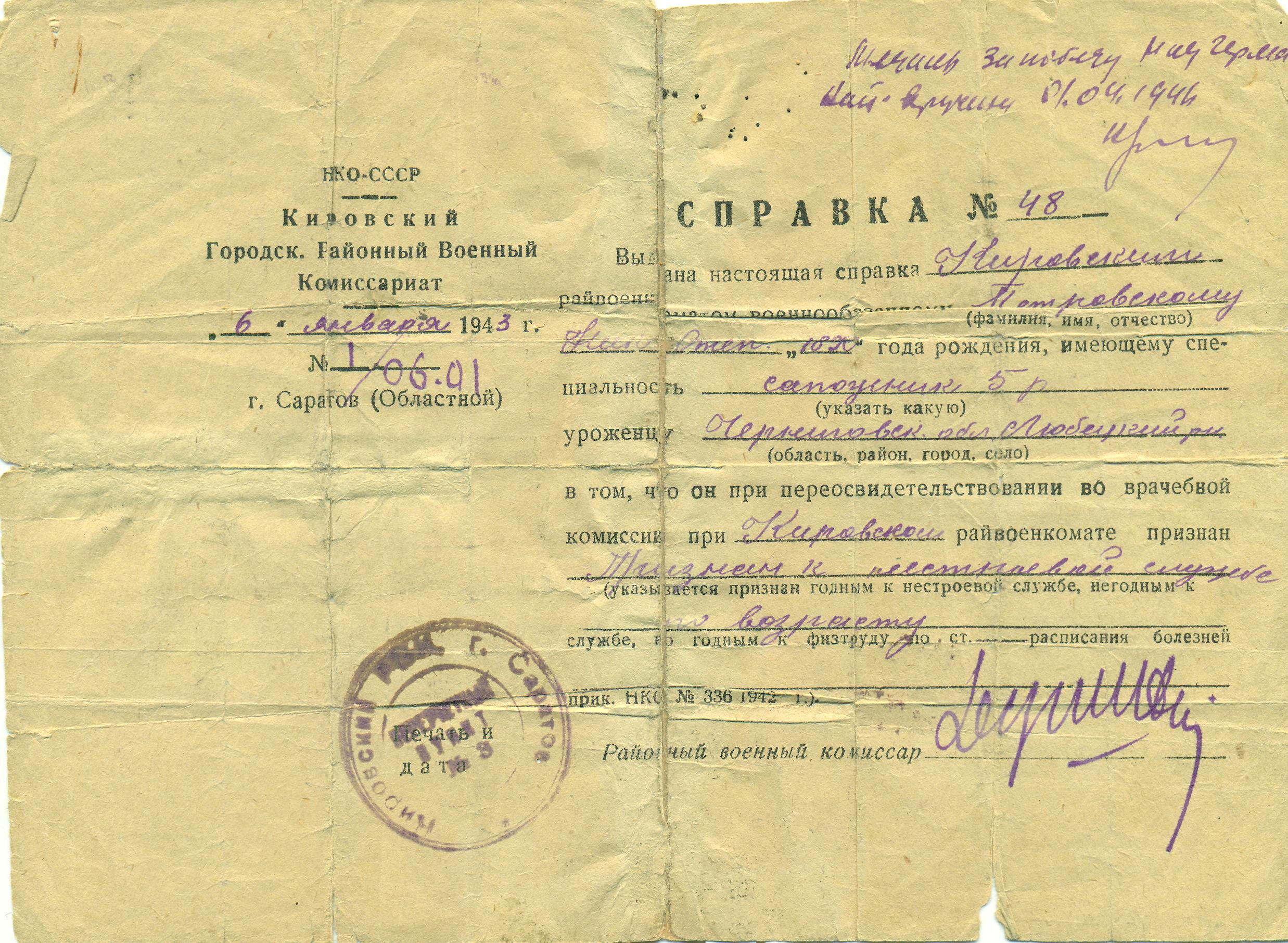 Материал предоставлен сыном, Валентином Николаевичем Петровским, г. Самара