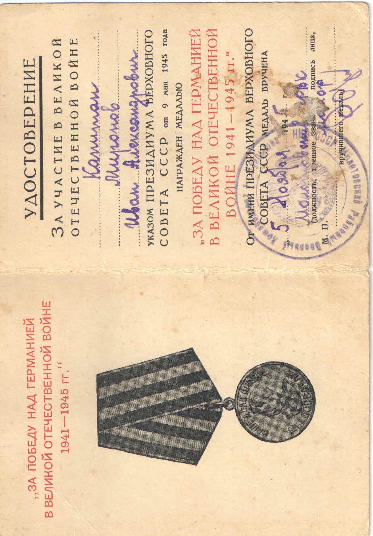 Награжден орденом Красной Звезды, медалями «За победу над Германией в Великой Отечественной войне 1941 – 1945 гг.», "За оборону Сталинграда".