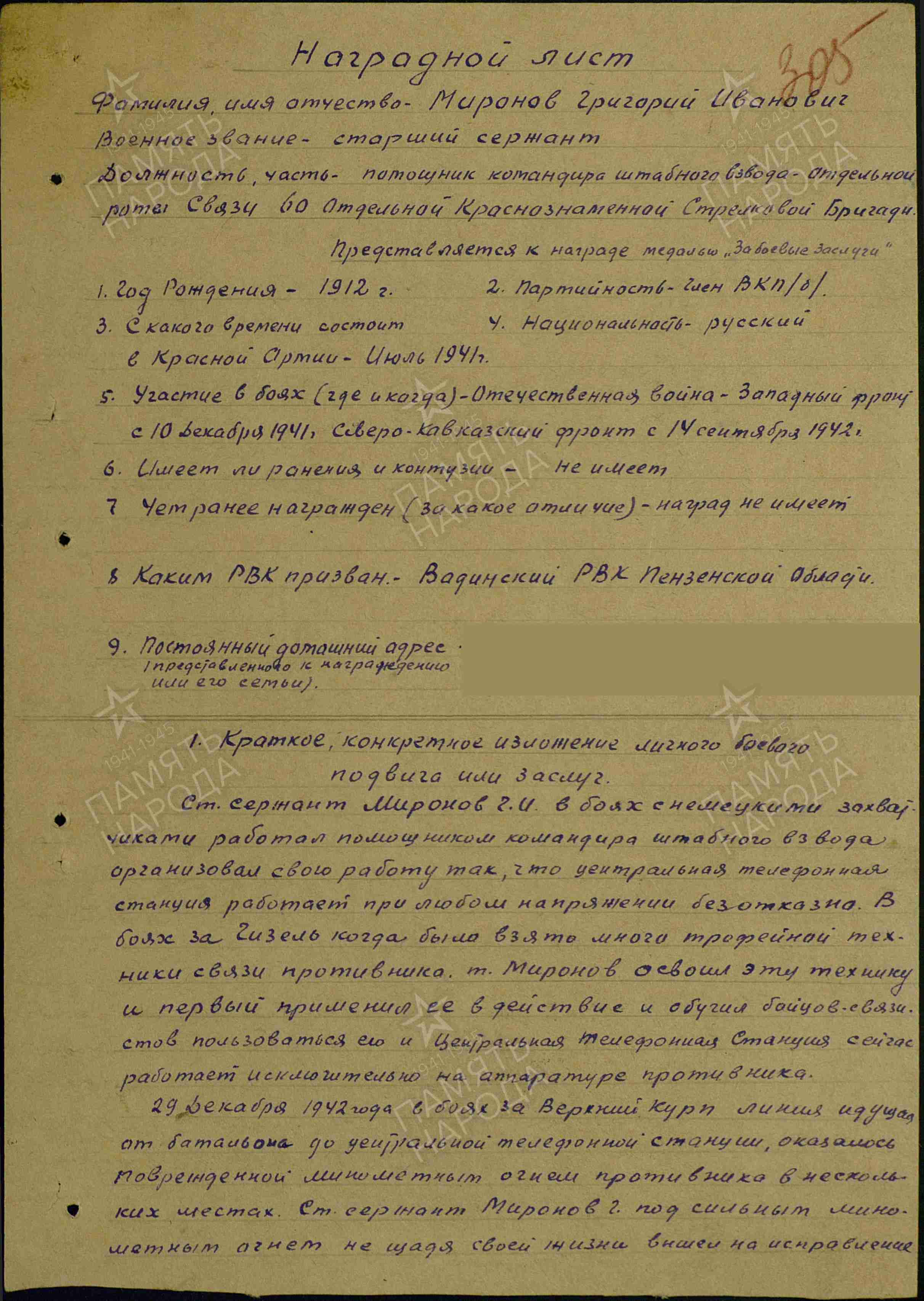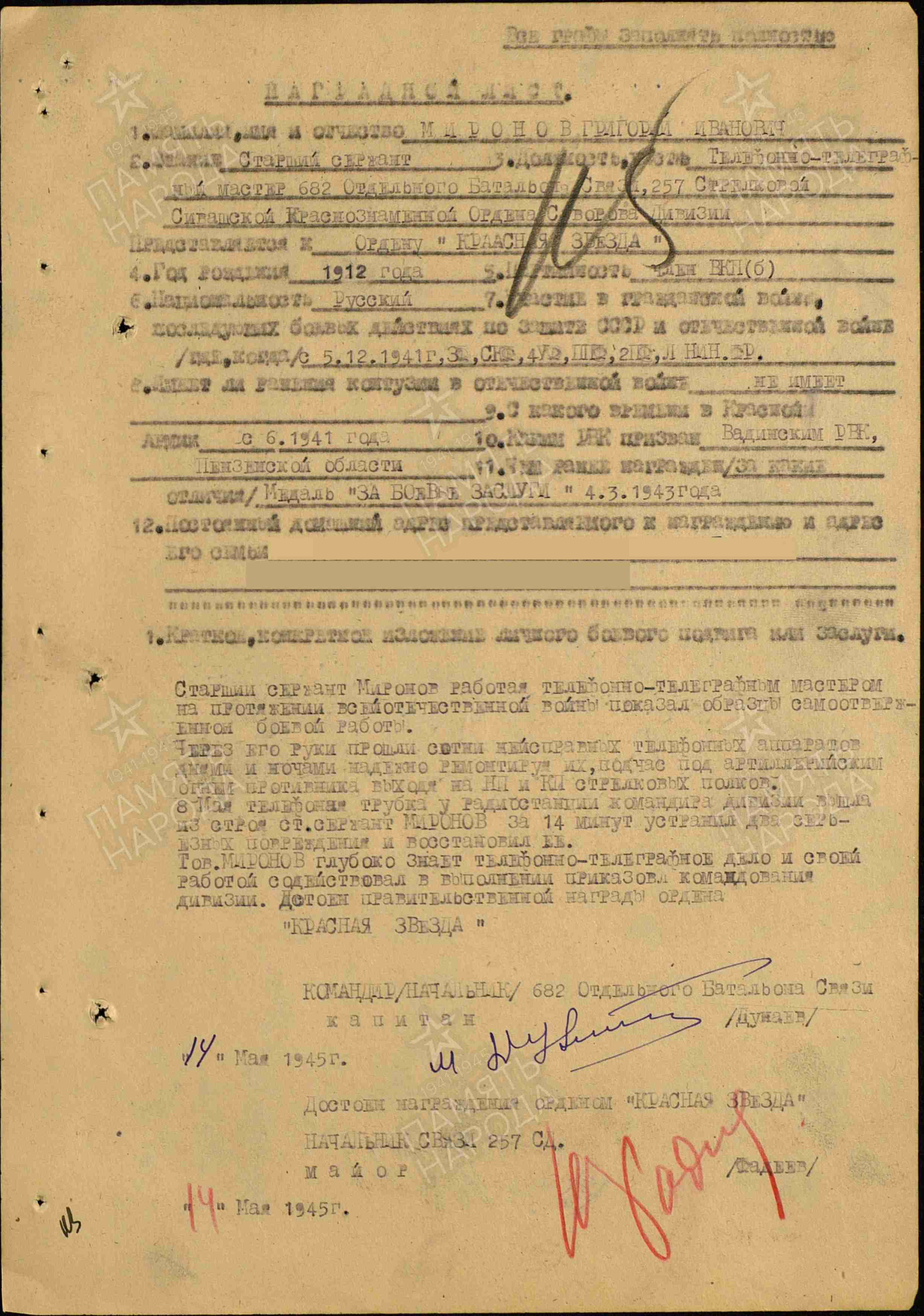 Материал из школьного музейного архива предоставлен внучкой, Мироновой Татьяной, п. Сборный Сызранского района Самарской области
