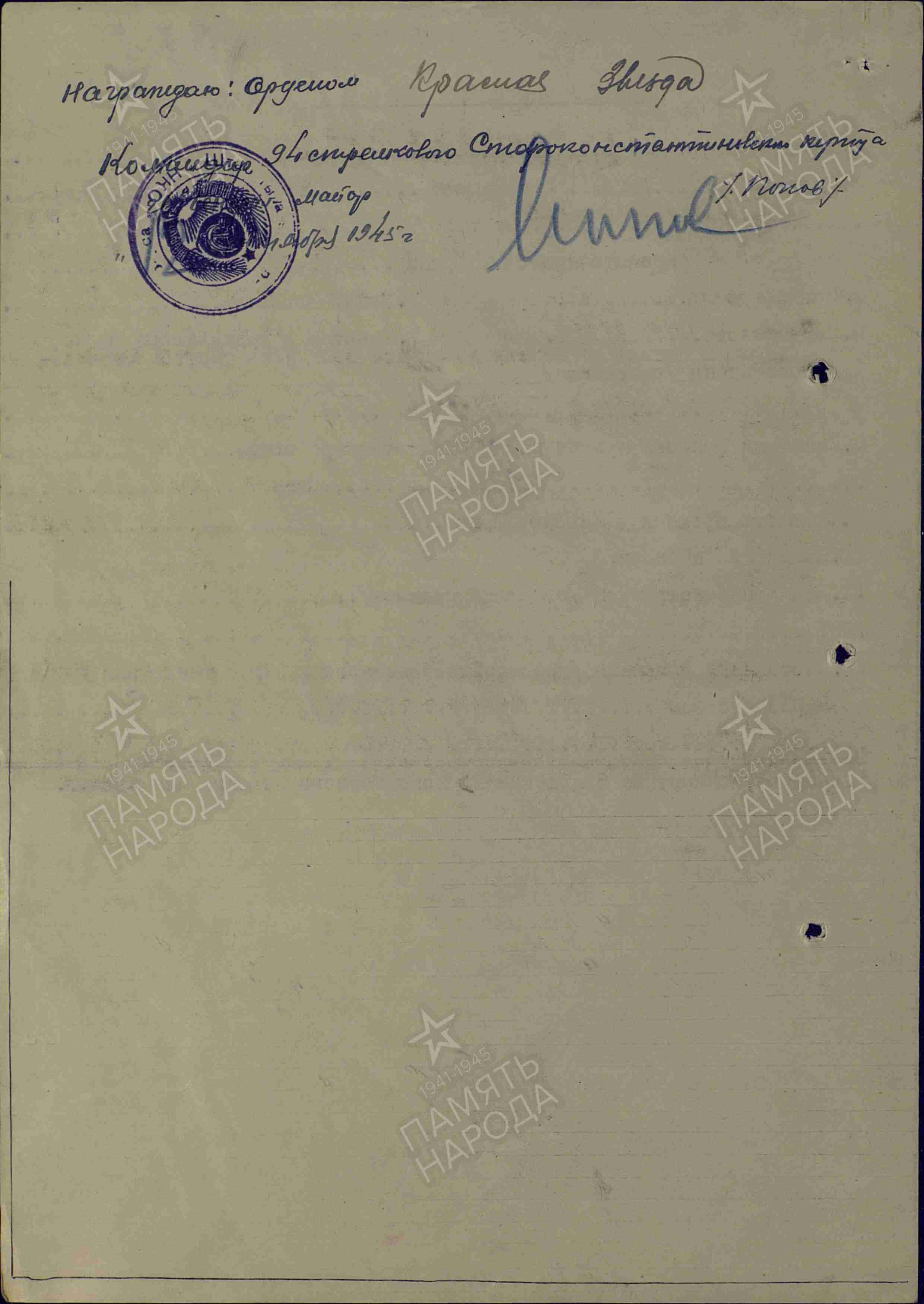 Награжден орденами Красной Звезды и Отечественной войны II степени, медалью «За победу над Японией».