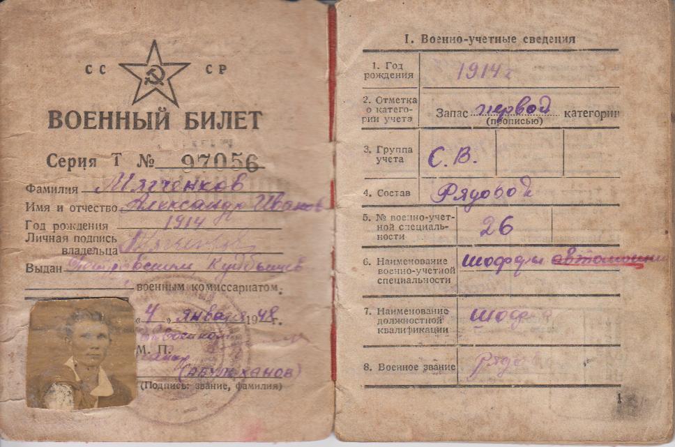 Фотографии и документы из семейного архива Мягченковой А.П. , жительницы села Петровка Борского района Самарской области