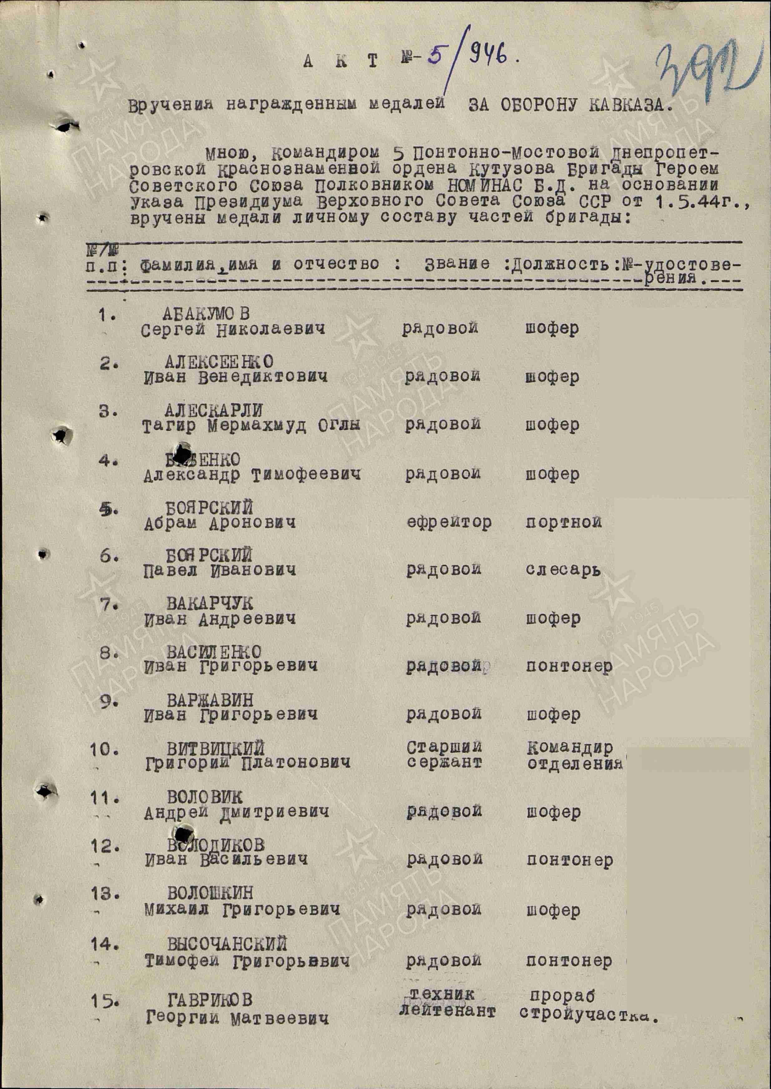 1914 года рождения, уроженец с. Неклюдовка Борского района. Участник Великой Отечественной войны. Был призван на военную службу в мае 1940 года Петровским РВК Куйбышевской области, был зачислен в 7 отдельный мото-понтонный батальон. В январе 1941 года Александр отправил родным фотографию, как он пишет на обороте - на память об армейских годах. Демобилизоваться со срочной военной службы не пришлось – началась война.