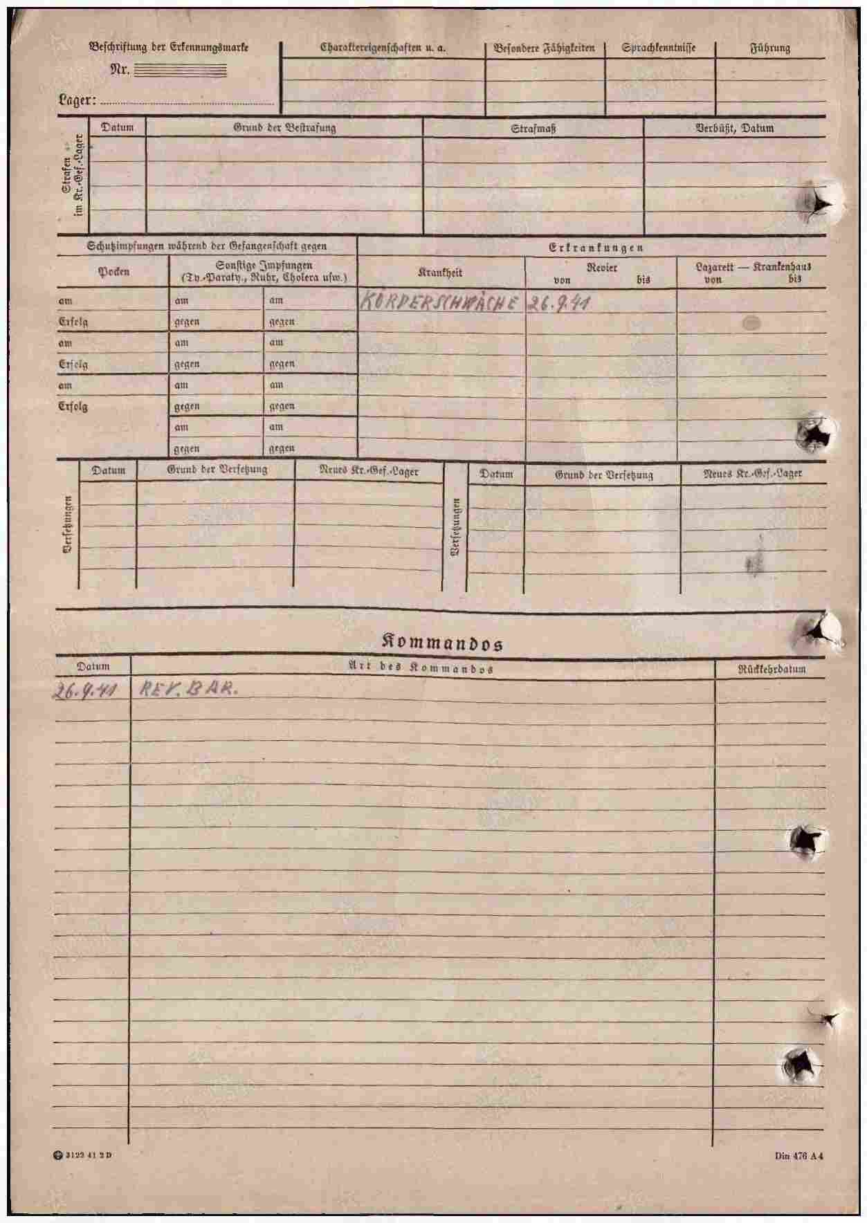 Родился 3 июля 1908 г. Иван Дмитриевич был призван на фронт 30 июня 1941 года Ново-Буянским райвоенкоматом. Рядовой. Попал в плен 12 августа 1941 года под Малиновкой. Был болен, когда попал в лагерь. Умер 1 октября 1941 в 17.00 в лагере Берген-Бельзен (Бе́рген-Бе́льзен — нацистский концентрационный лагерь, располагавшийся в провинции Ганновер (сегодня — на территории земли Нижняя Саксония) в миле от деревни Бельзен и в нескольких километрах к юго-западу от города Берген.).