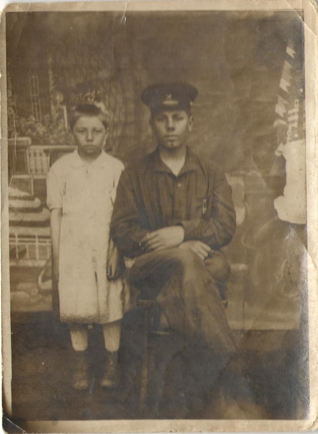 Фотография сделана перед уходом на фронт. На ней Николай Васильевич Краснов со своей сестрой.