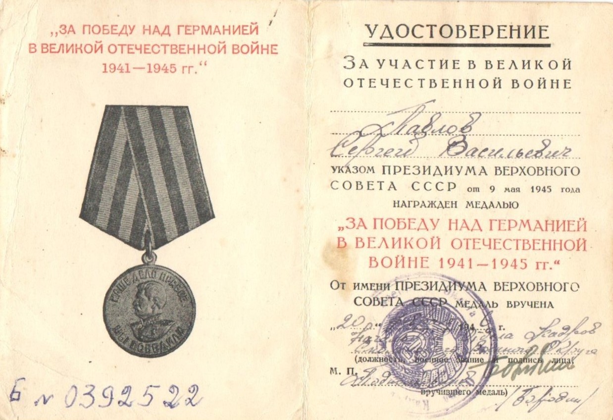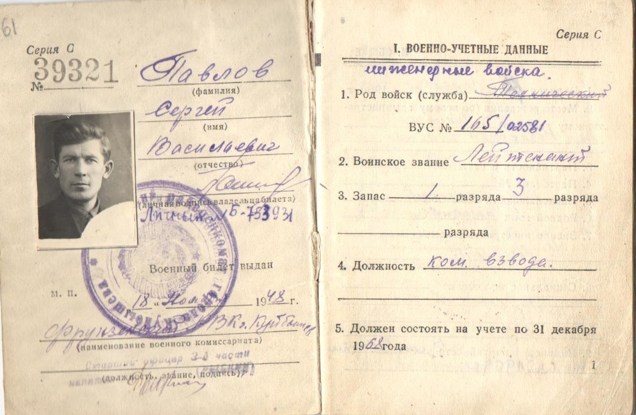 Фото и документы из семейного архива Павлова Сергея Васильевича предоставлены внучкой, Бухваловой Е.А., г. Самара