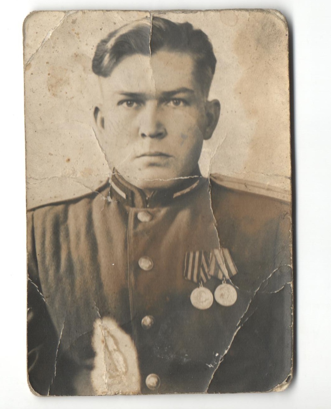 На фронт призван из города Шадринск. Служил в артиллерии. Старший лейтенант. Проходил службу с 28.08.1942 г. по 20.02.1945 г. Награжден медалями «За победу над Германией в Великой Отечественной войне 1941–1945 гг.», «За боевые заслуги».