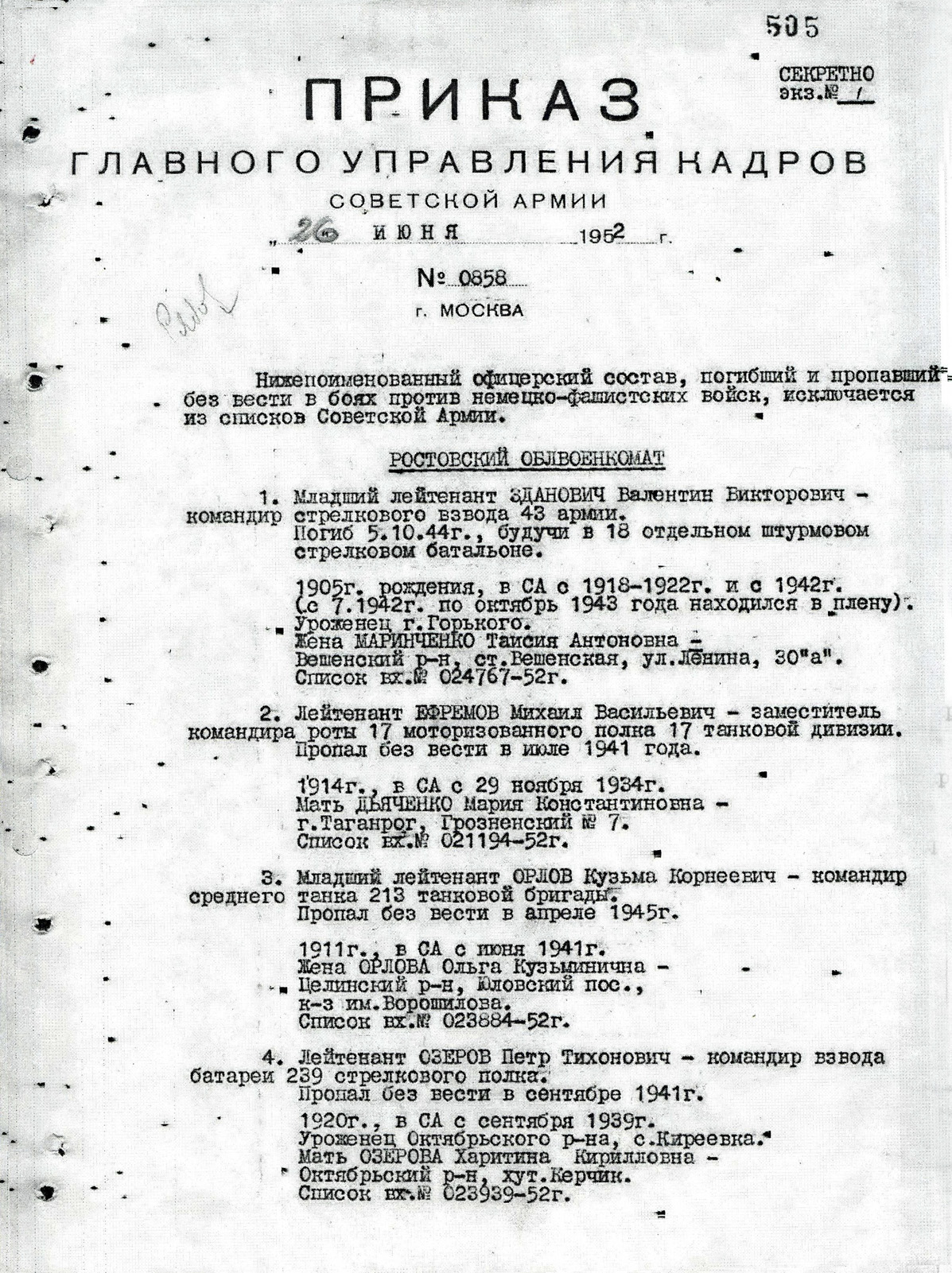 У родных осталась только фотография своего героя, и в семье помнят несколько фраз из несохранившегося письма с фронта: «…Тятя, мама, сегодня уходим в бой. Надеюсь остаться живым…».