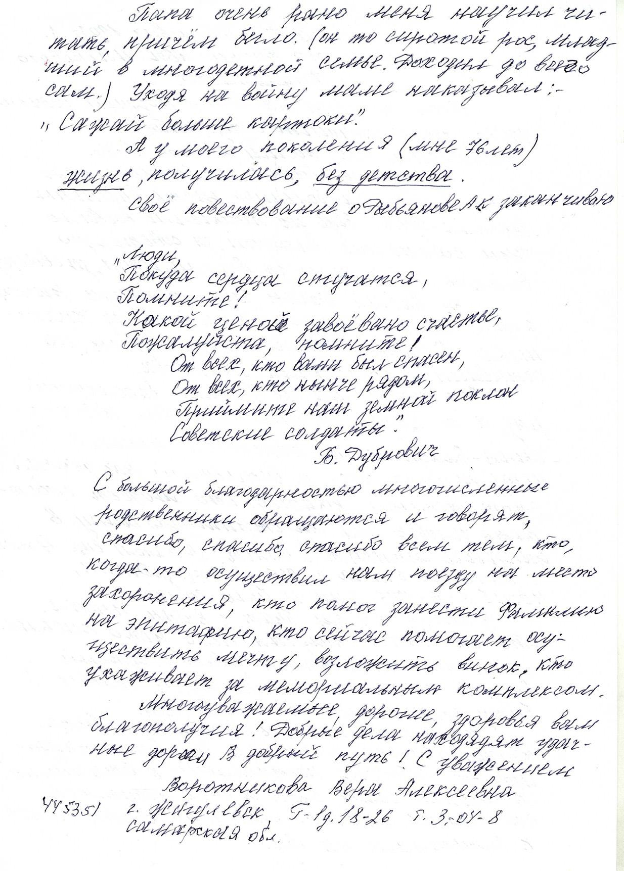 Материалы предоставила дочь Воротникова Вера Алексеевна, город Жигулёвск Самарской области
