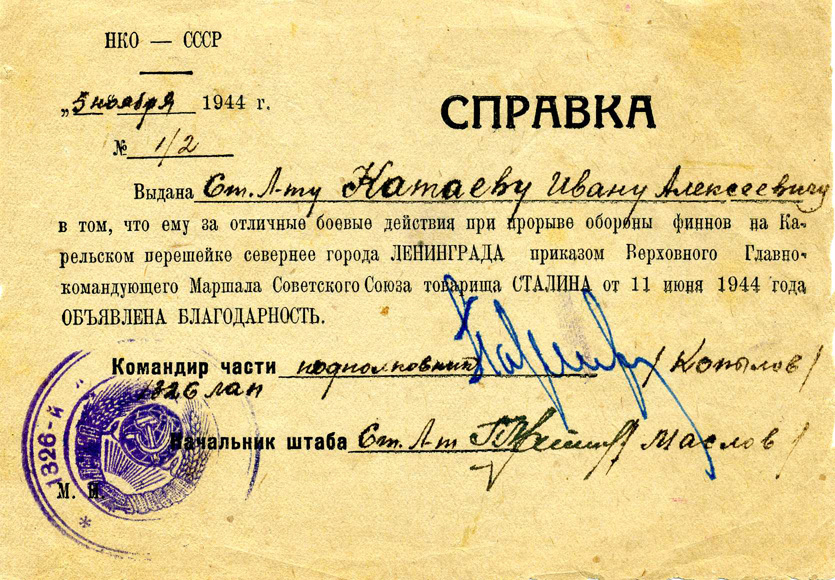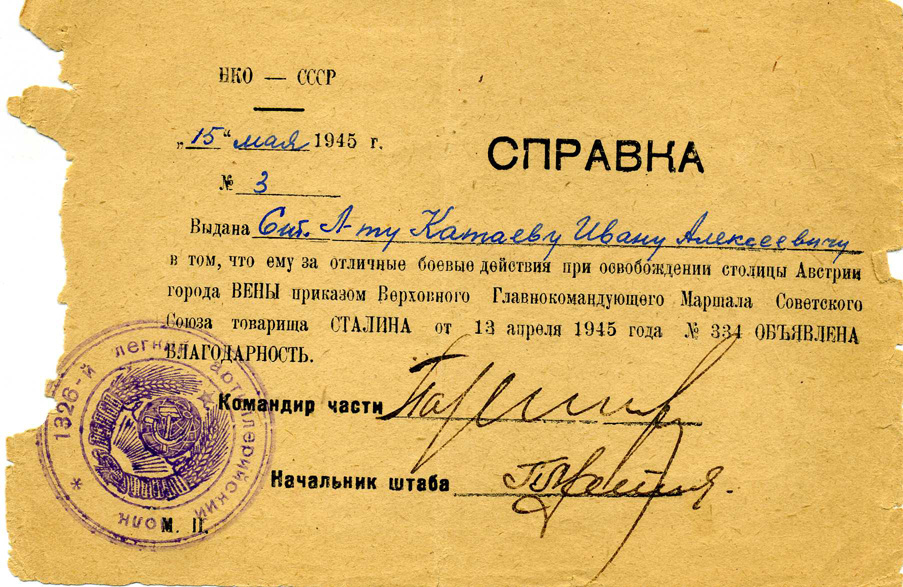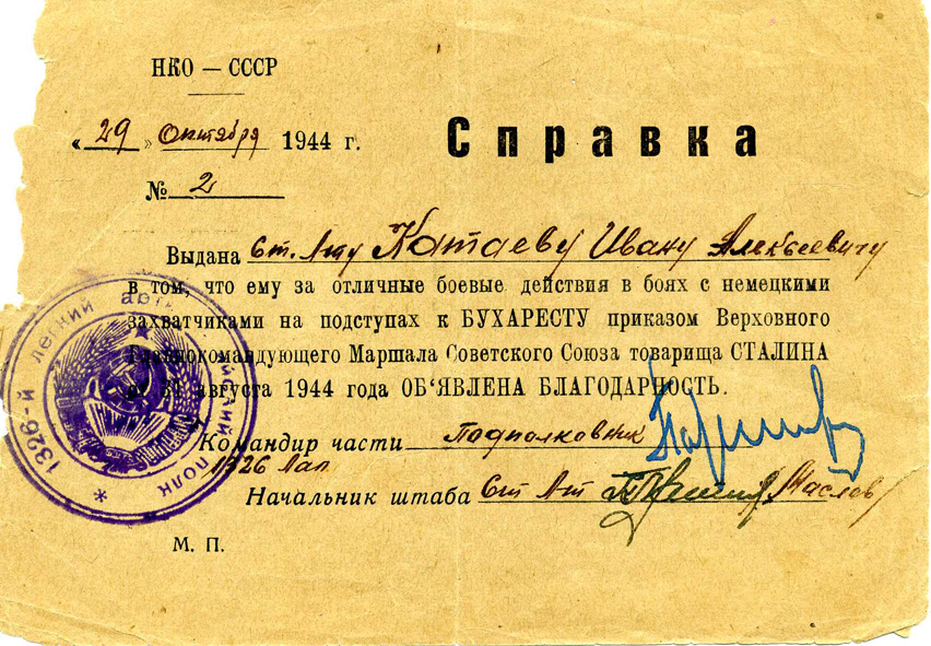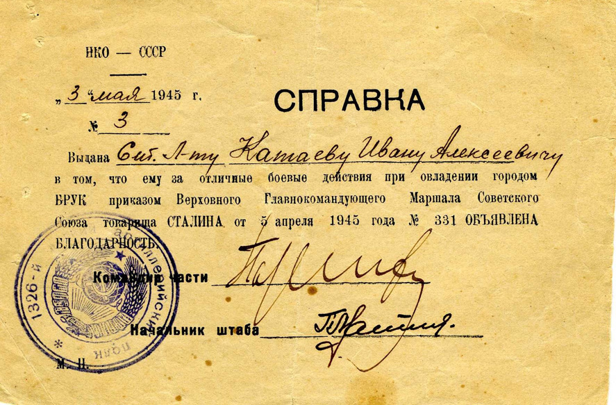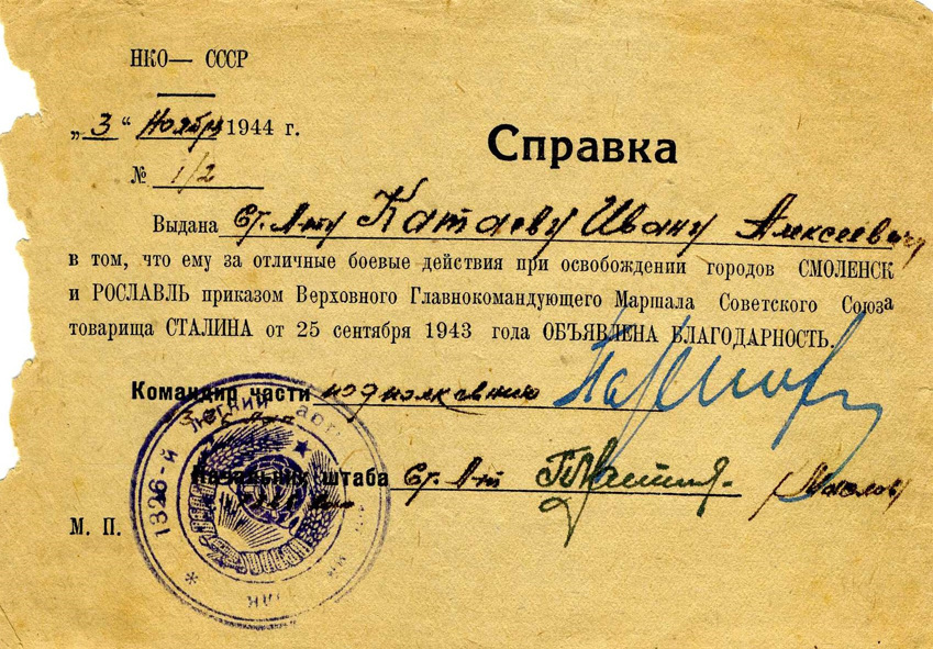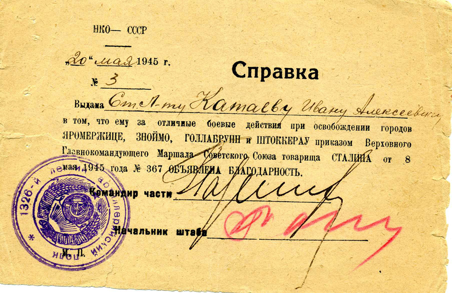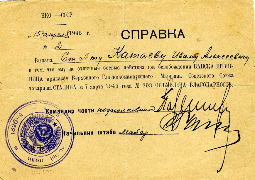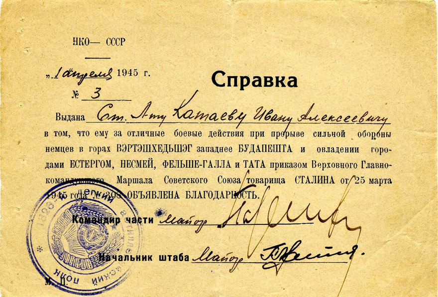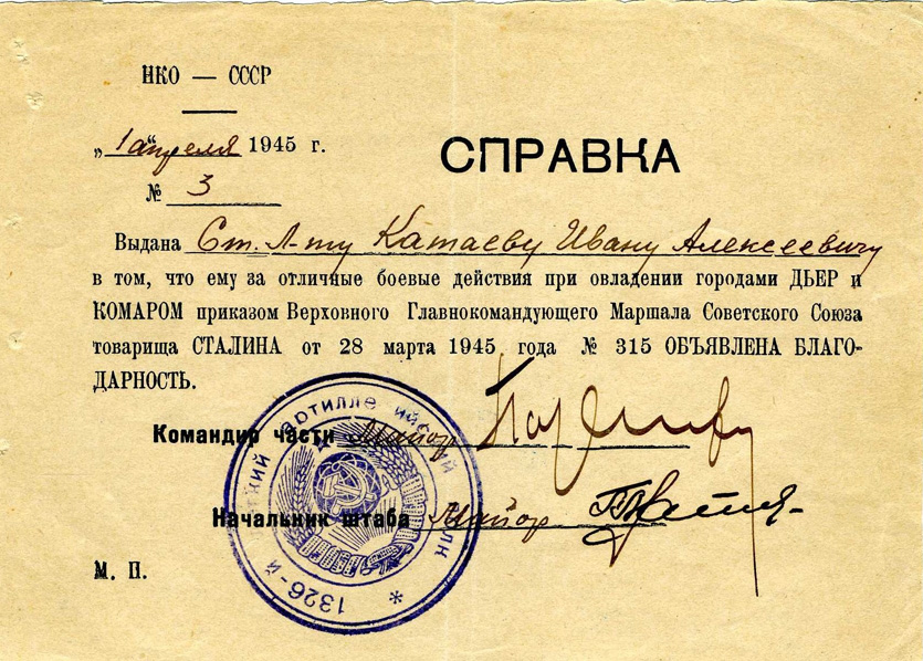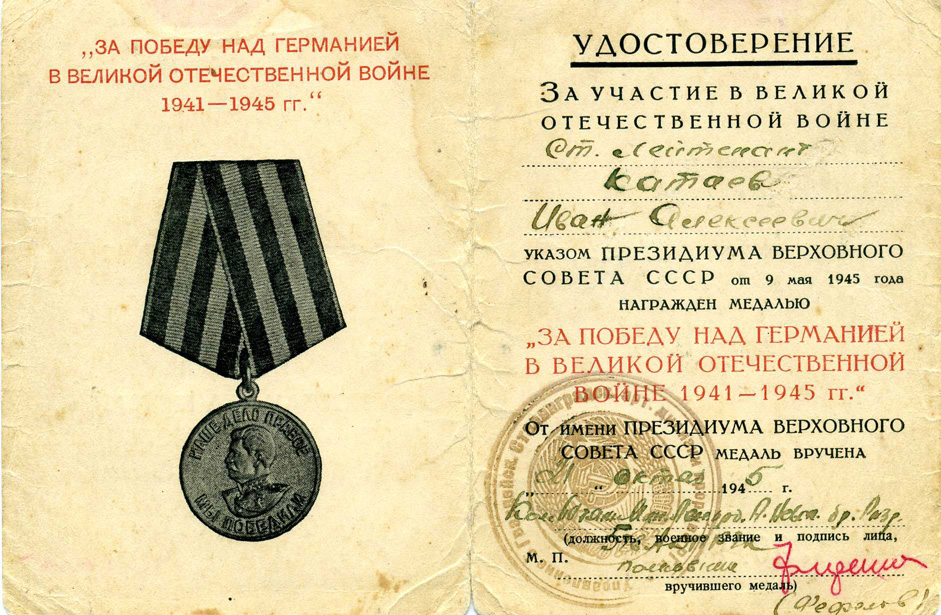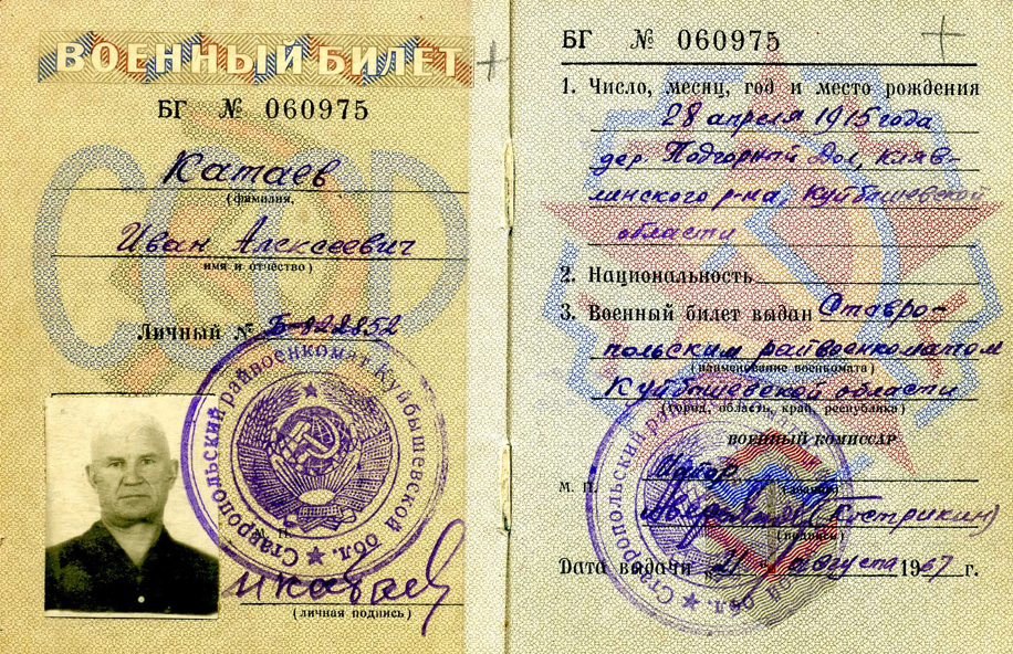 Материалы предоставила дочь Катаева Валентина Ивановна, город Жигулёвск Самарской области