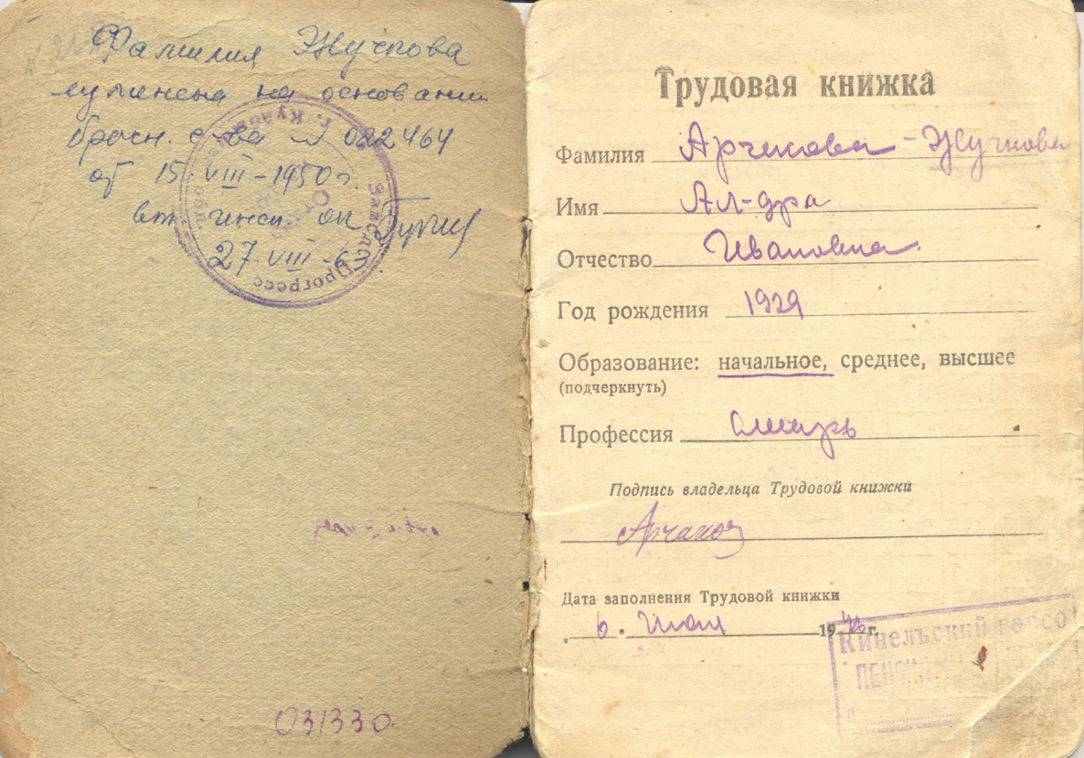 Александра Ивановна Жучкова (Арчекова) родилась 19 января 1929 года в городе Моршанск Тамбовской области. 2 июля 1943-го в возрасте 14 лет была принята на работу в вагонный участок станции Моршанск Московско–Рязанской железной дороги на должность чернорабочего. До 27 февраля 1945-го она вместе с другими подростками работала на подсобном хозяйстве. В их обязанности входили посадка, прополка, уборка зерновых и корнеплодных культур, уход за животными.