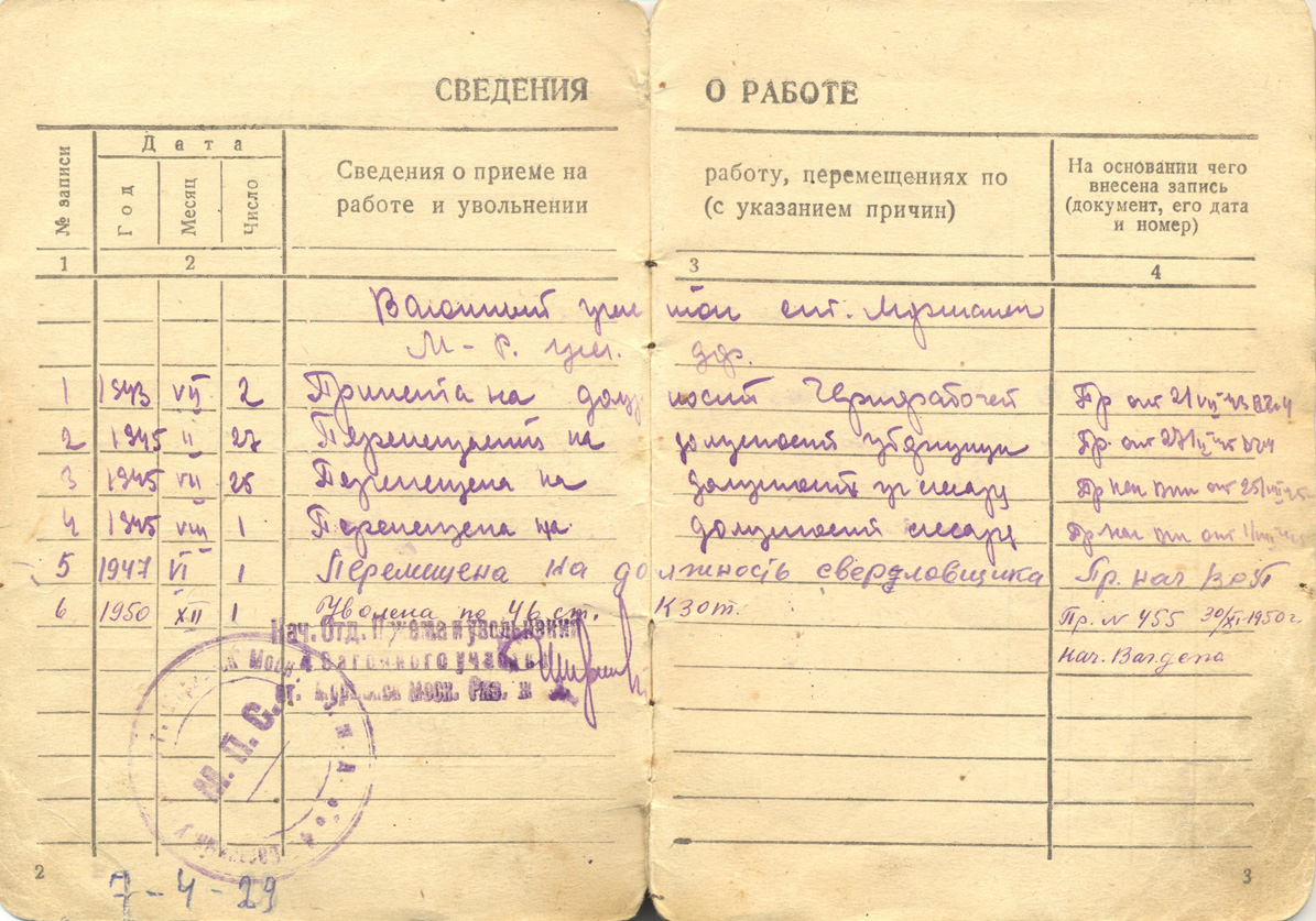 Зимой всех ребят переводили работать в вагонное депо, где они по мере своих возможностей помогали взрослым в ремонте вагонов, которые приходили с фронтов. Они раскручивали металлическую проволоку, которой были закрыты двери, затем из этой проволоки делали гвозди для ремонта тех же вагонов. Проволоку выпрямляли, резали на части и обрабатывали на слесарных станках. Работать ребятам приходилось по 12-18 часов, часто они ранили руки. Спали прямо в цехах, часто не доедали. С 27 февраля 1945 года Александру Ивановну перевели на должность уборщицы, приходилось убирать большие цеха, в которых было очень холодно.